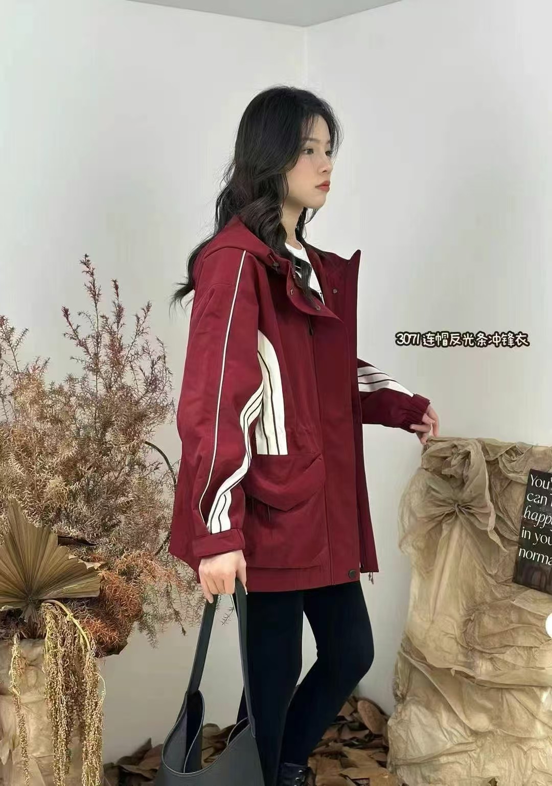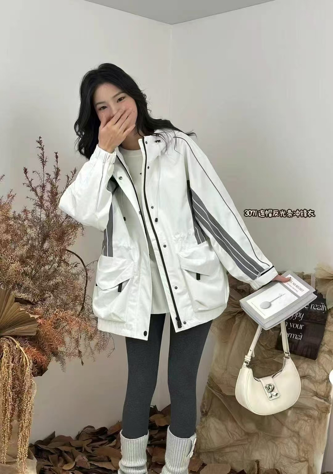 24AW33071#连帽反光条收腰款冲锋衣外套