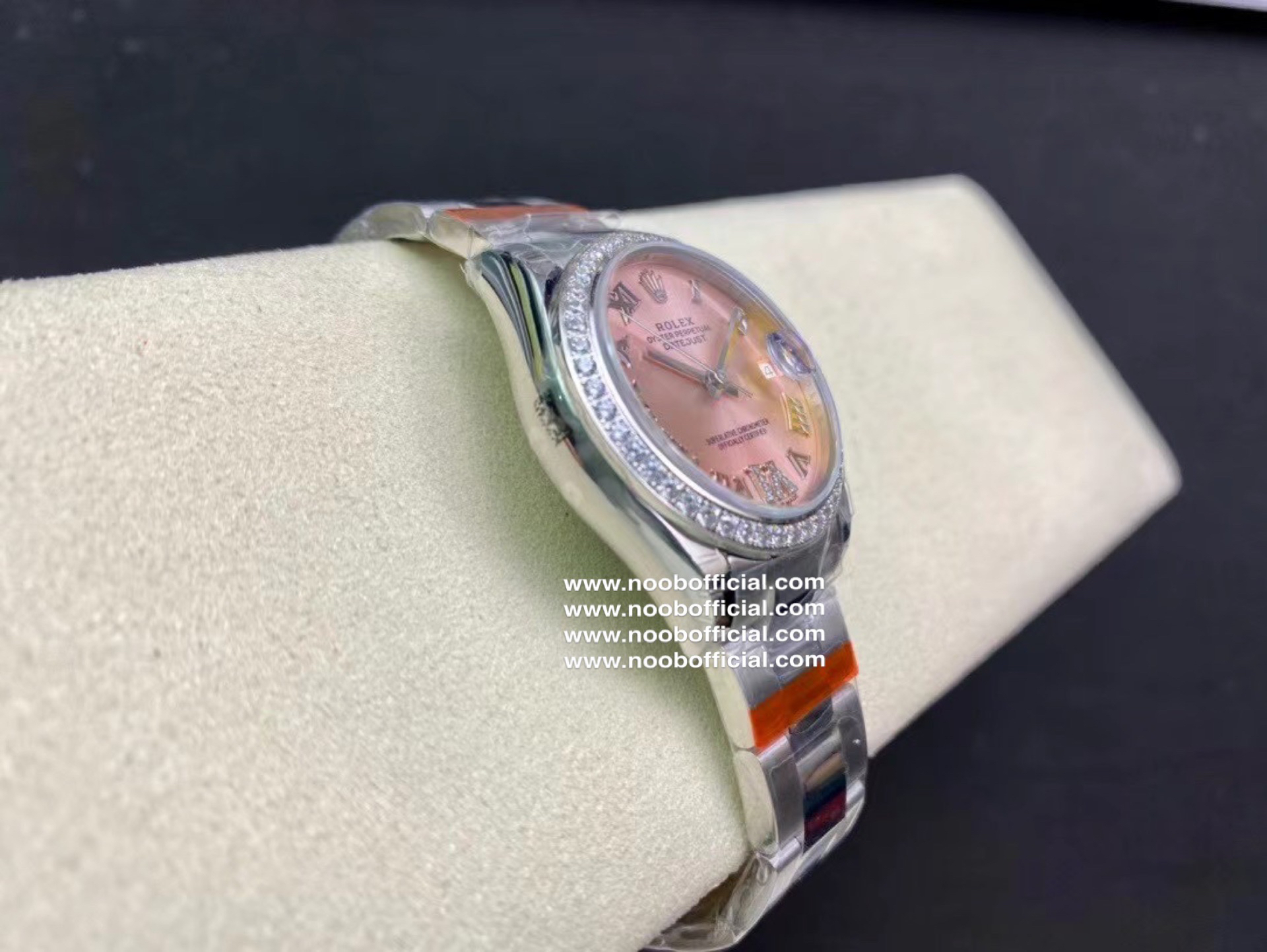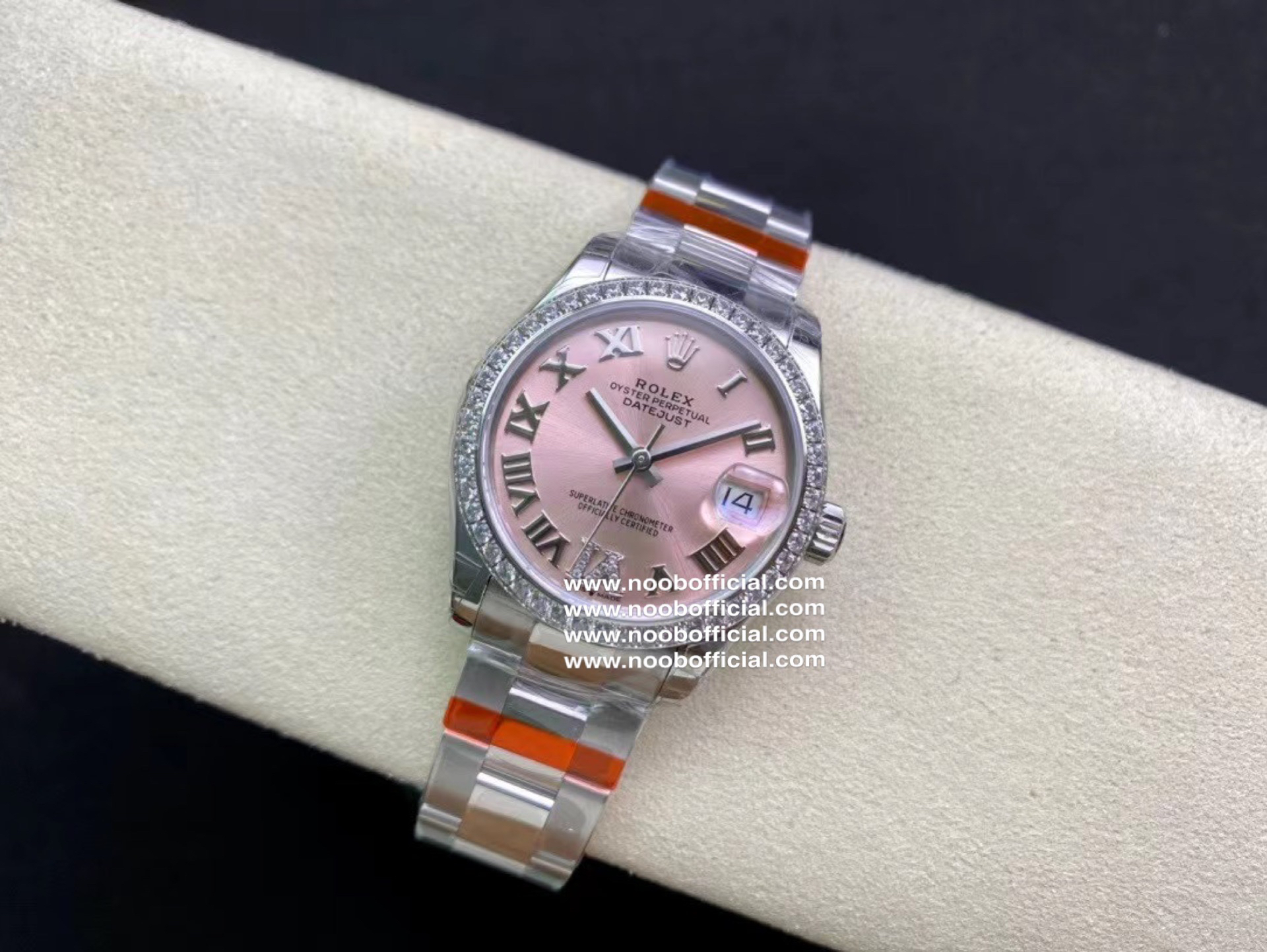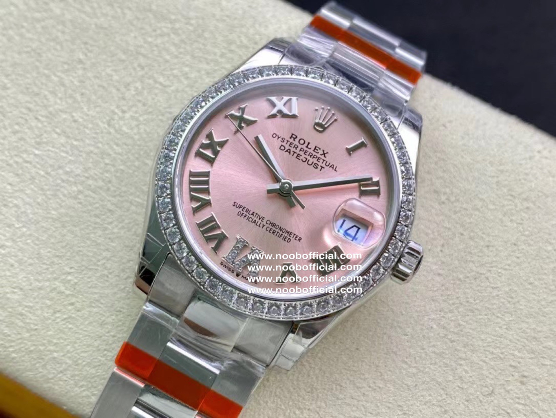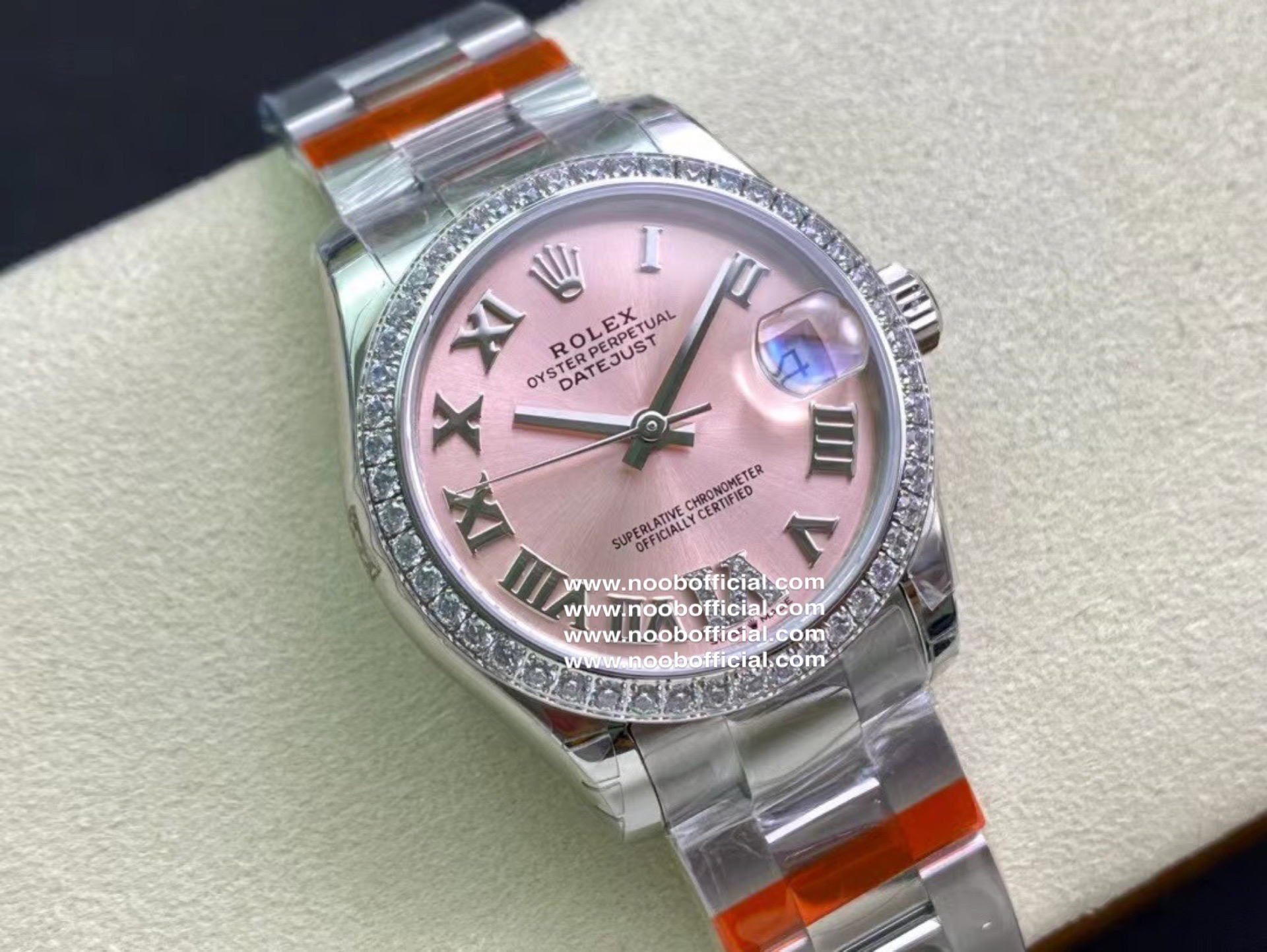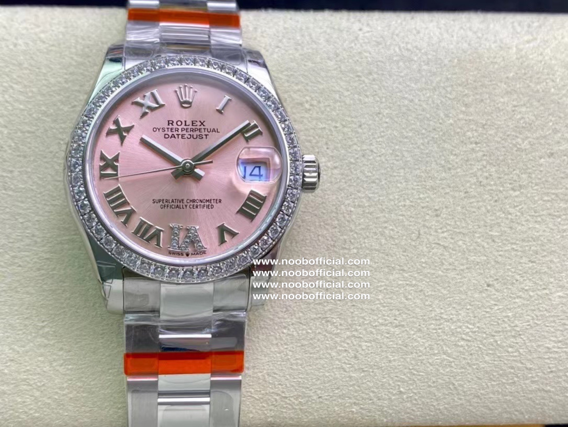 NOOB劳力士 蚝式恒动31日志 秀而不媚 恒久优雅 。【表壳】尺寸31Mm,采用耗式钢与18K,表圈采用白金狗牙圈,圈口镶多粒施华洛斯奇钻 ,保证100米防水。