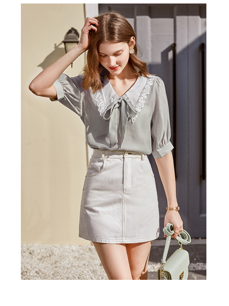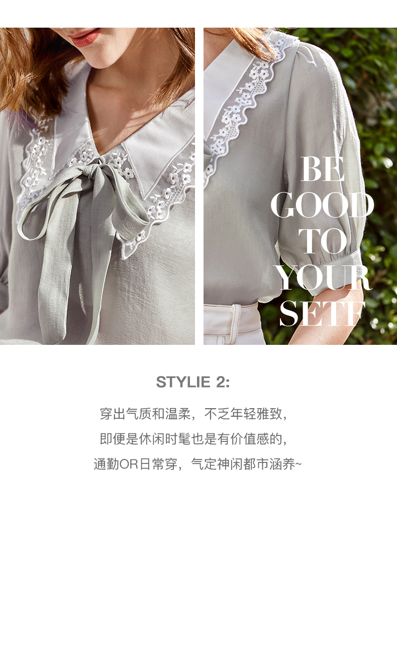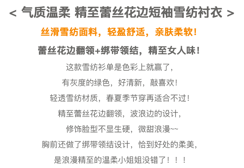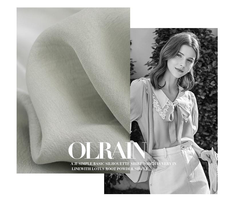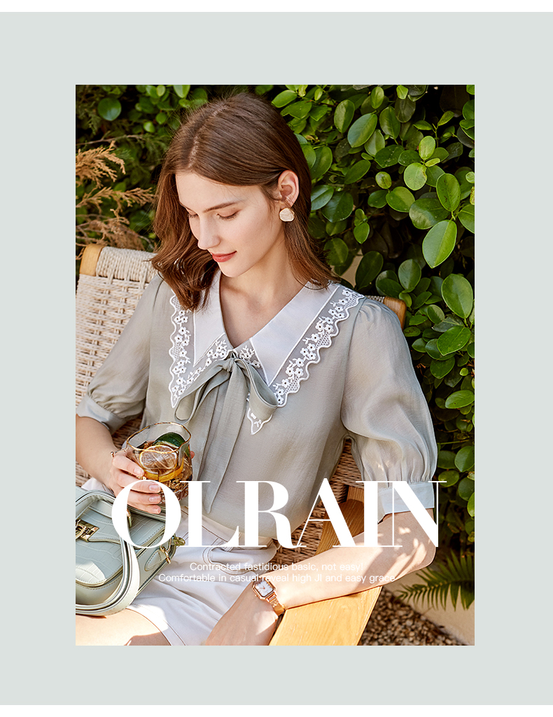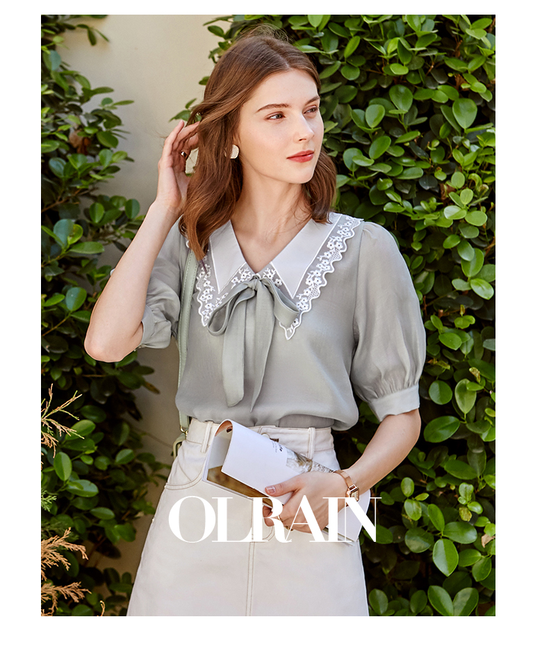 欧芮儿雪纺衬衫女2021春夏蕾丝花边绑带领气质时尚优雅年轻上衣
