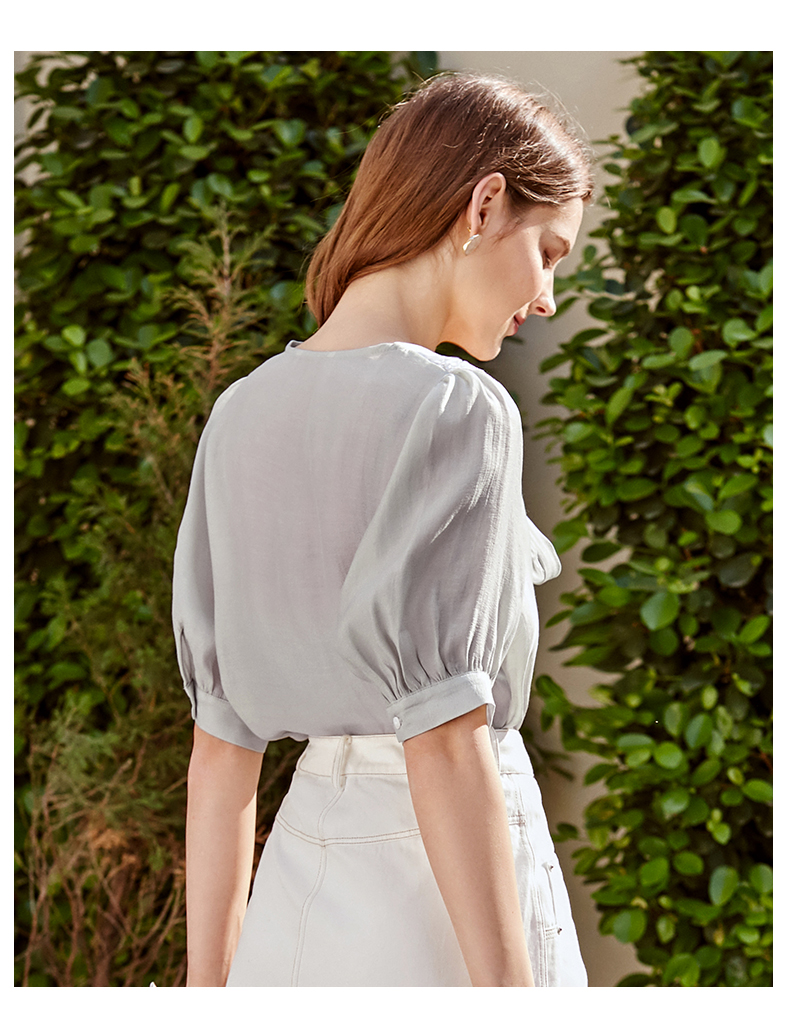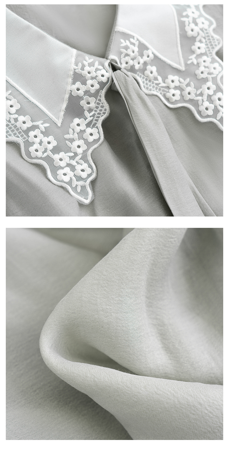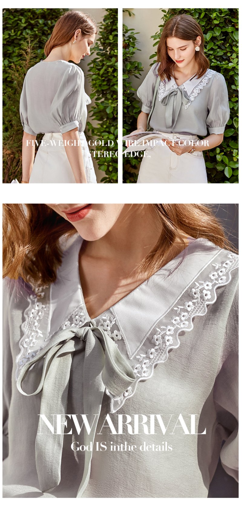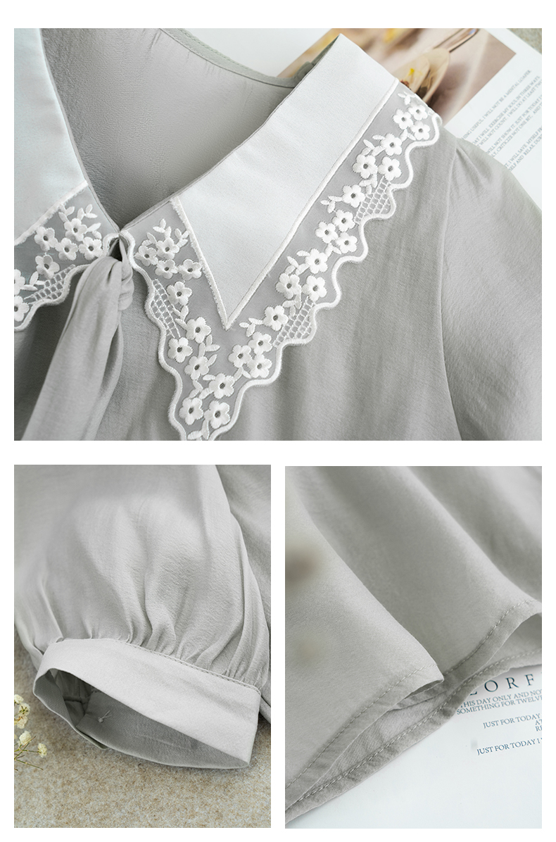 欧芮儿雪纺衬衫女2021春夏蕾丝花边绑带领气质时尚优雅年轻上衣