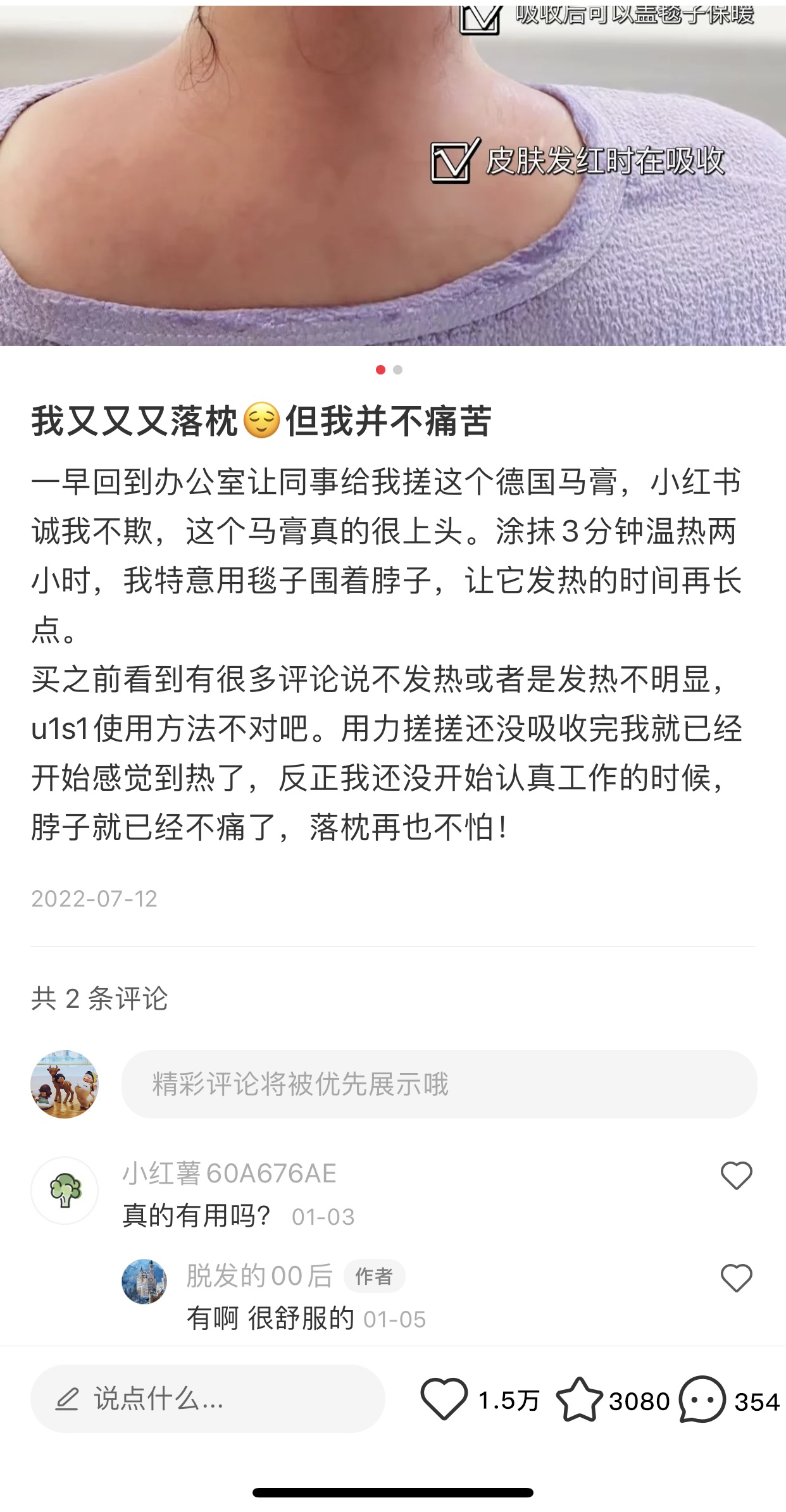 揉搓按摩一两分钟就能完全吸收,大约10分钟左右,会逐渐发热发挥作用,连续使用一周,能感觉到疼痛缓解不少。
