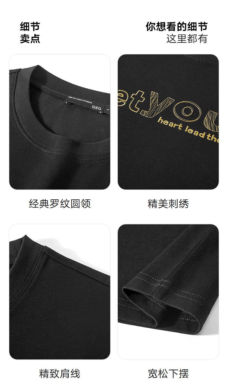 25夏季热卖 GXG男装经典双色时尚字母刺绣百搭通勤圆领短袖T恤