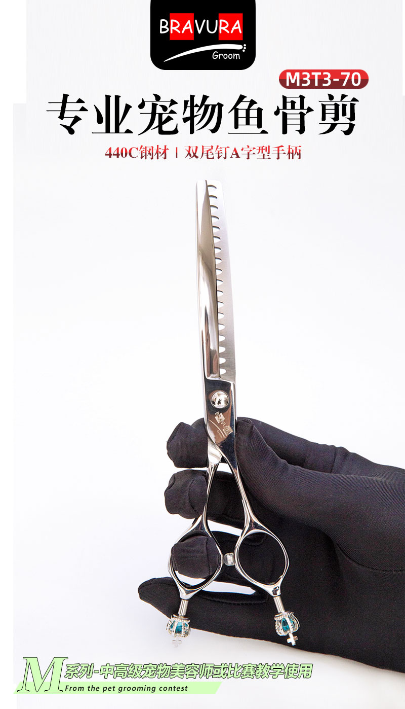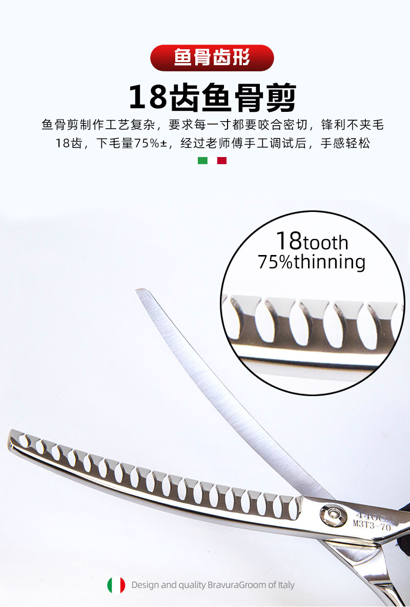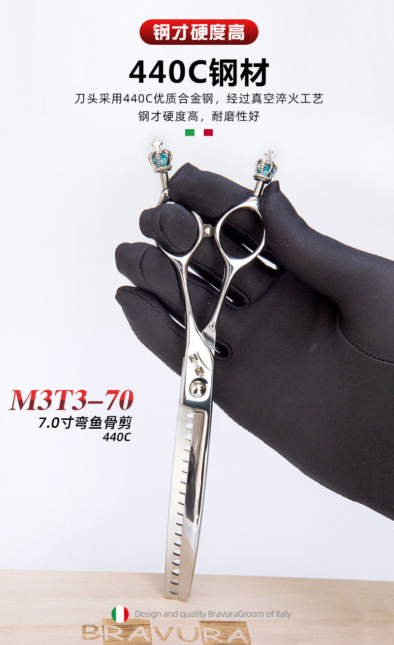 宠物经典弯鱼骨剪 M3T3-70 升级VG10钢材 意大利BRAVURAGROOM