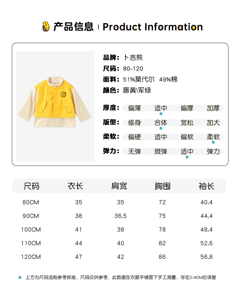 BOOGIEBEAR卜吉熊童装春秋休闲外套80-120 GF3217306