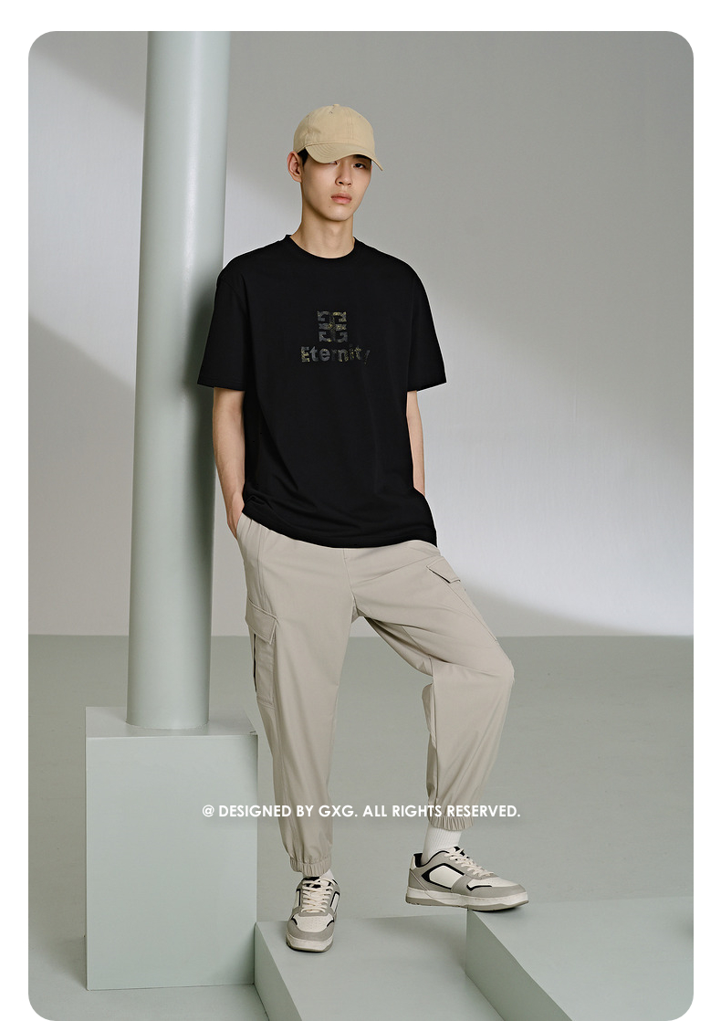 GXG男装 265g重磅字母绣花简约时尚圆领短袖T恤男士 夏季新品