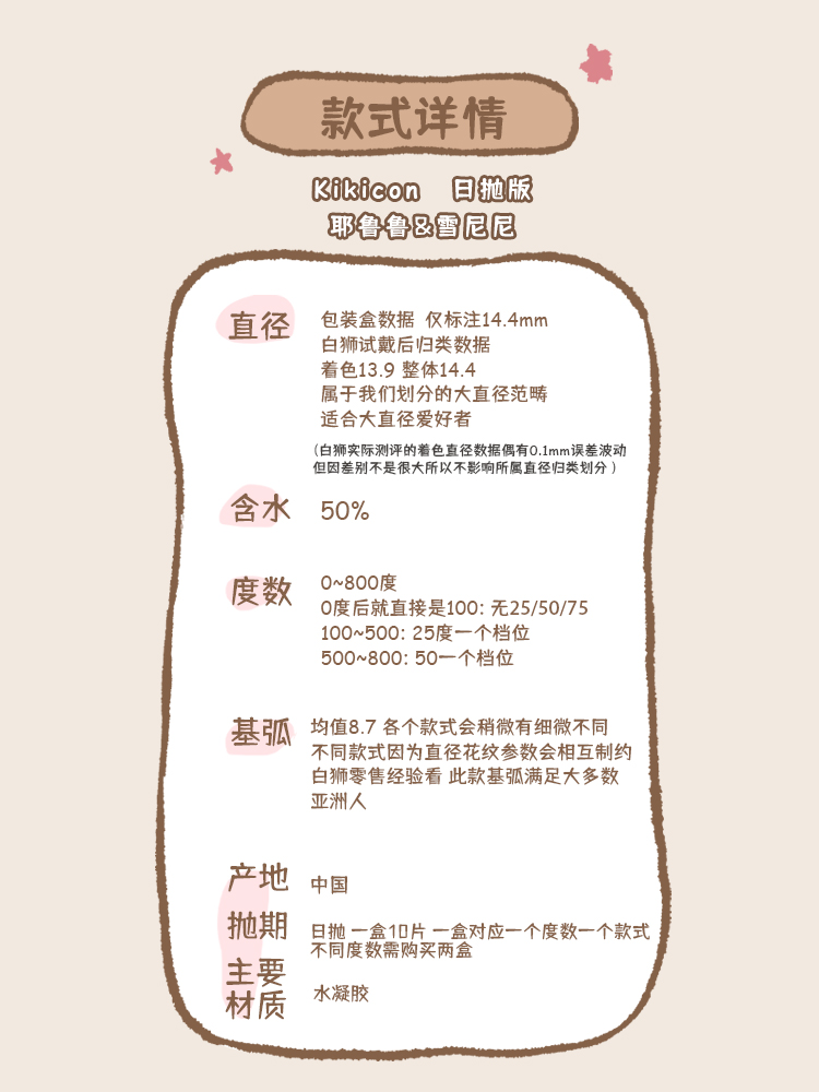Kikicon旗下 ·耶鲁鲁&雪尼尼|14.4mm白狮参考着色大直径|日抛