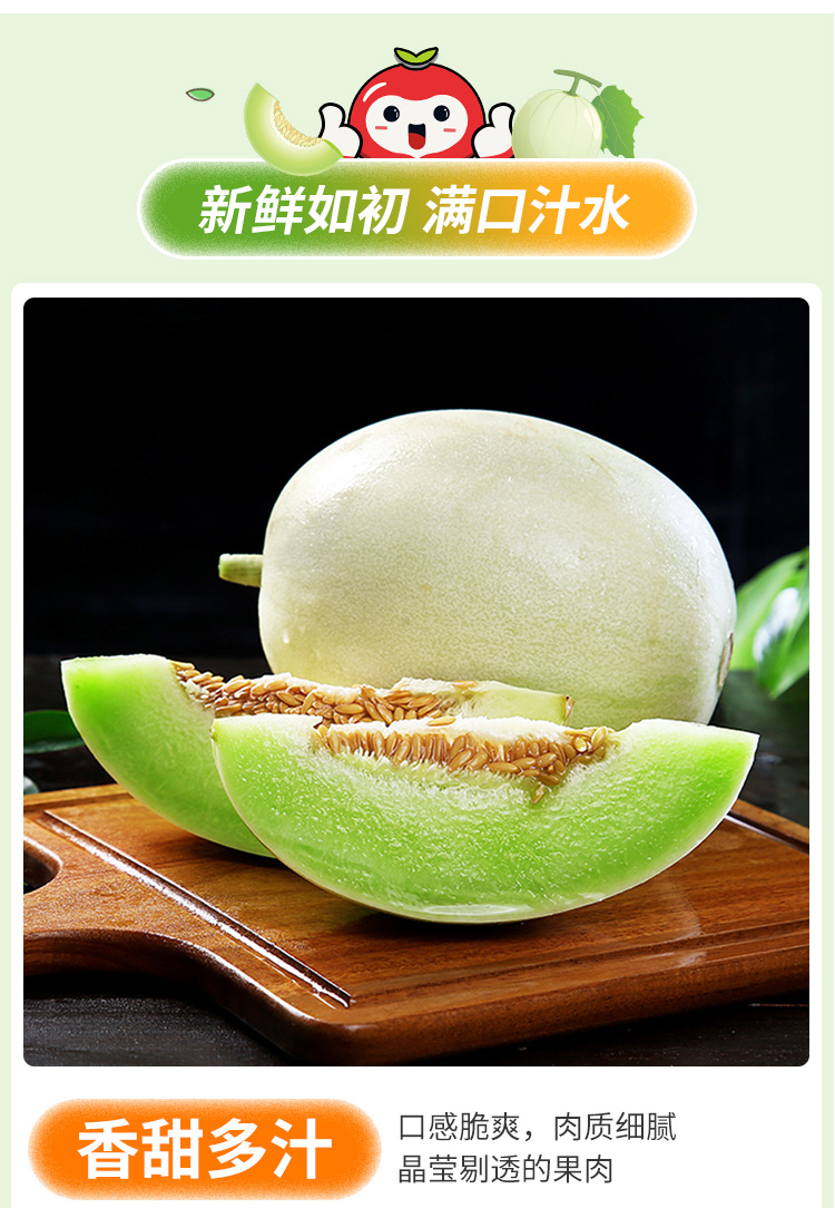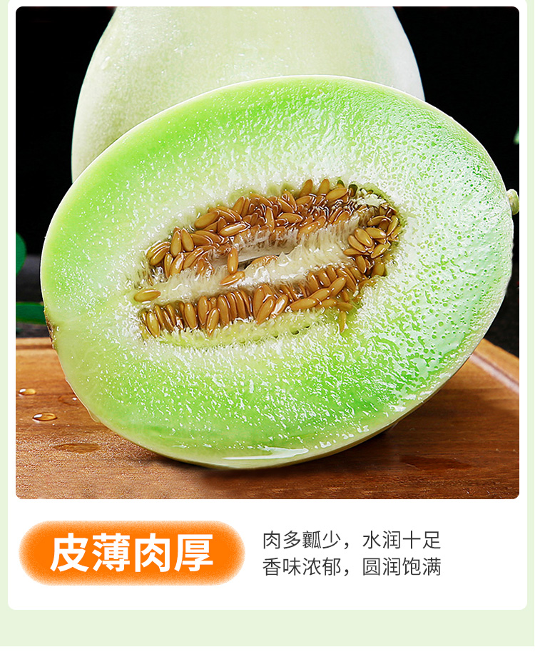 玉菇甜瓜 脆甜多汁 翠绿白甜瓜 脆甜香瓜蜜瓜 当季新鲜水果甜瓜 白皮青瓤 玉菇蜜瓜
