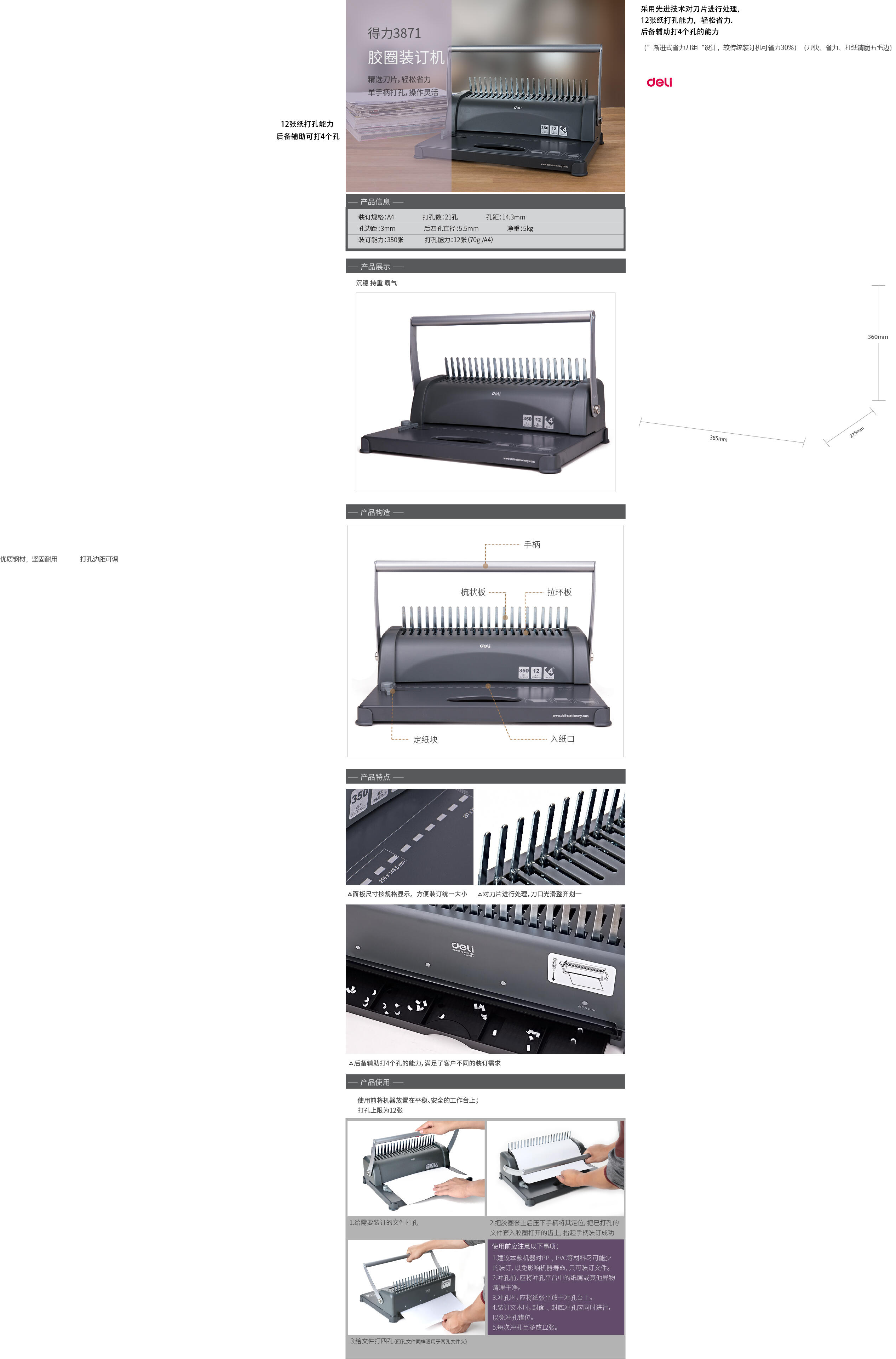 得力3871胶圈装订机(黑)(台)-得力集团有限公司