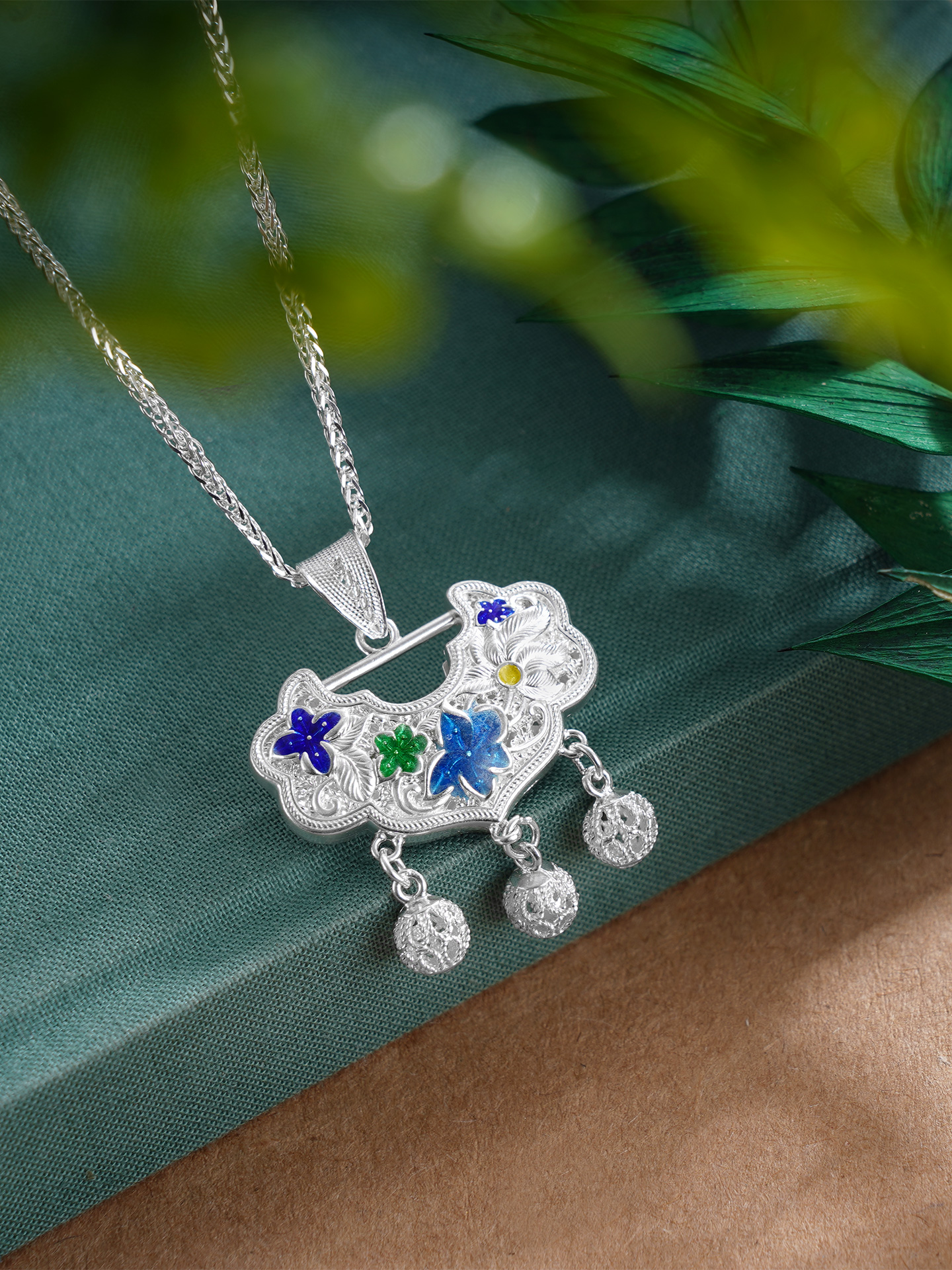 【寓意】:春风又度紫云英,满树繁花玉步轻。吊坠汲取天地间最纯粹的灵气,以银花丝勾勒蓝楹花清丽风姿,寓意佩戴者寻觅到内心宁静之境,证悟生命的真谛。