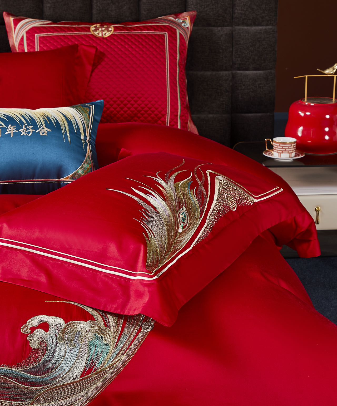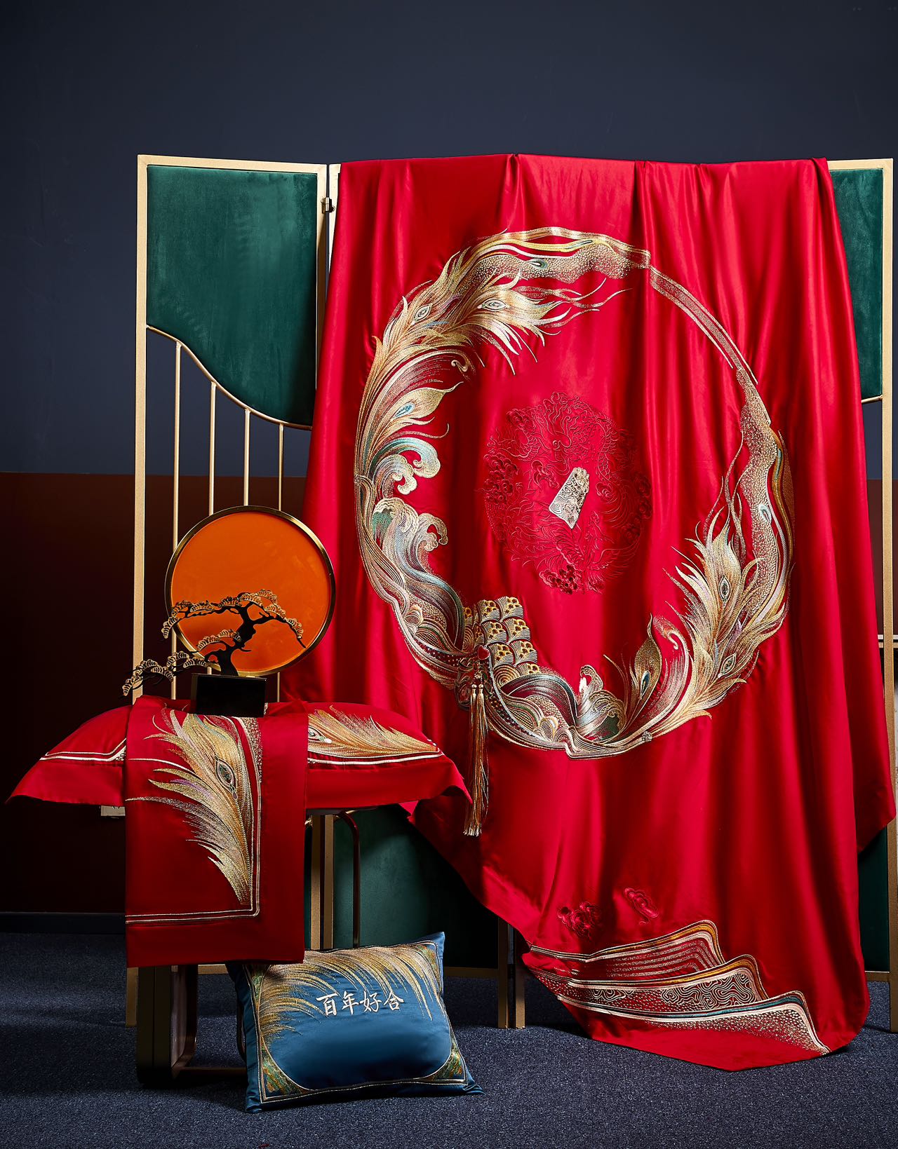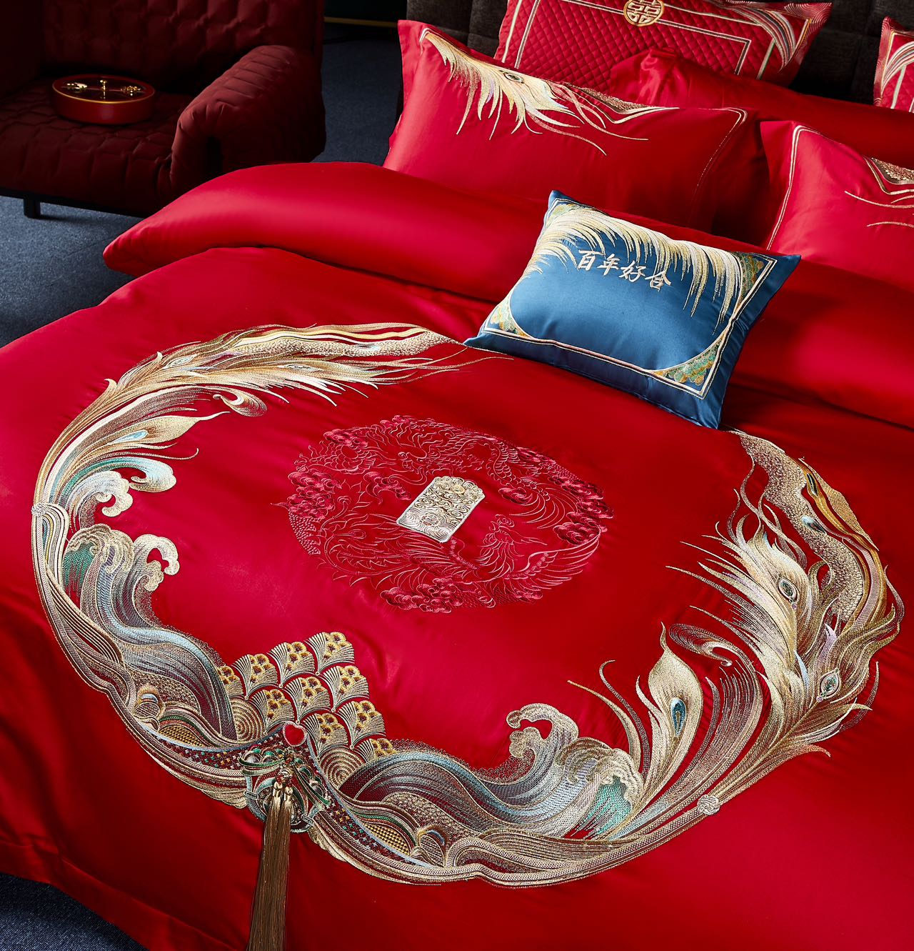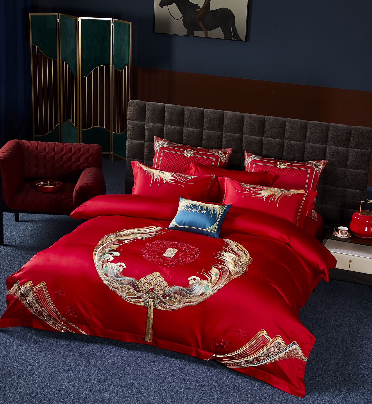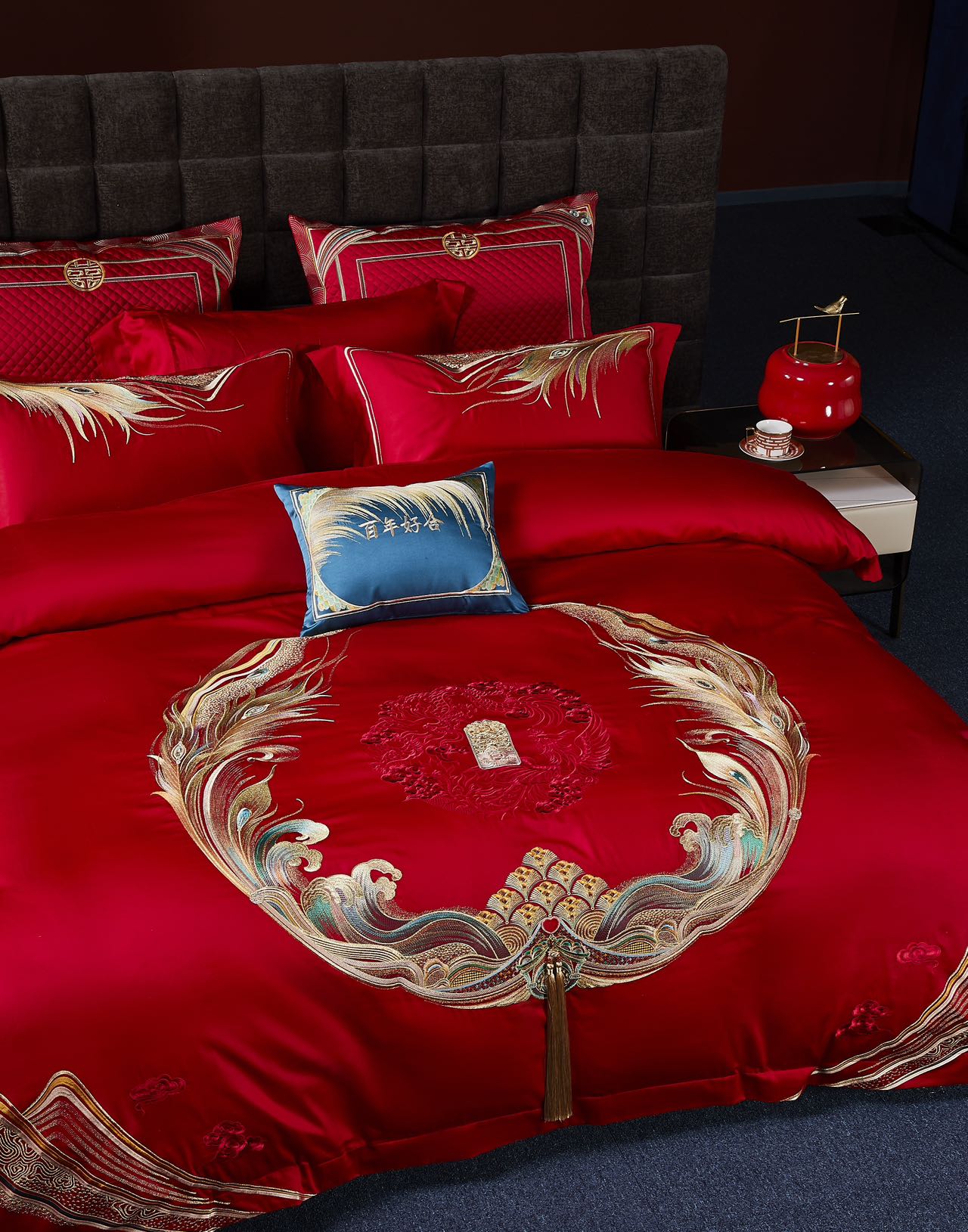 利路米高端婚庆大红色龙凤婚房全棉喜被六件套--锦绣良缘