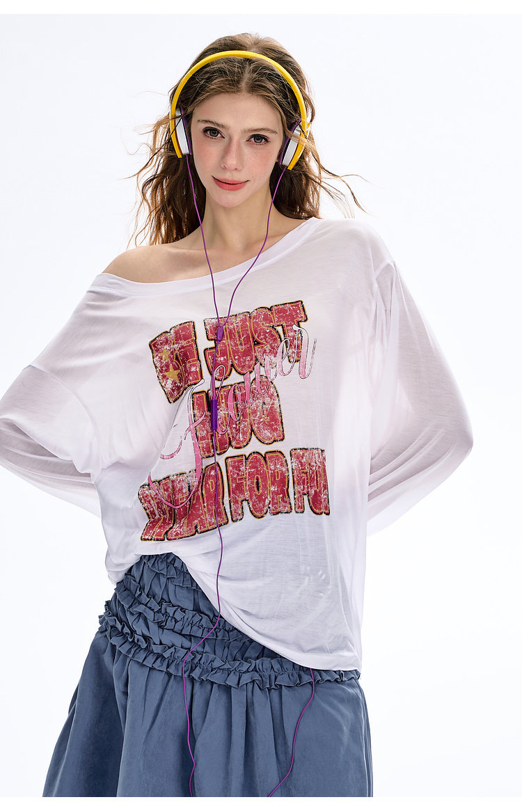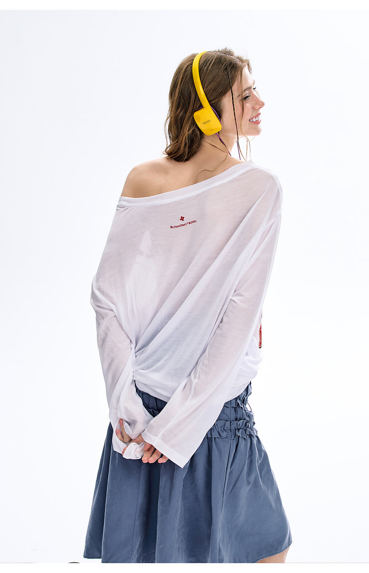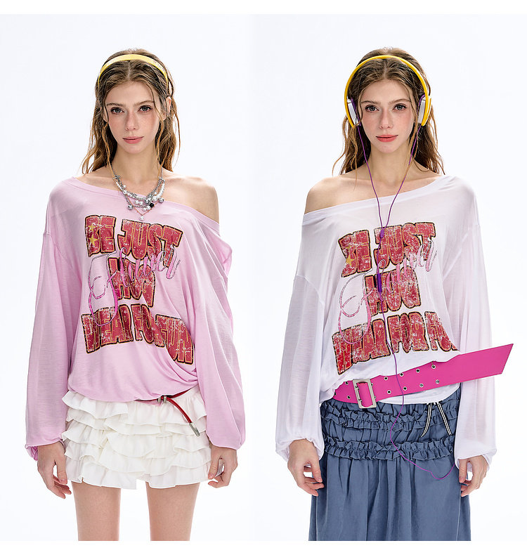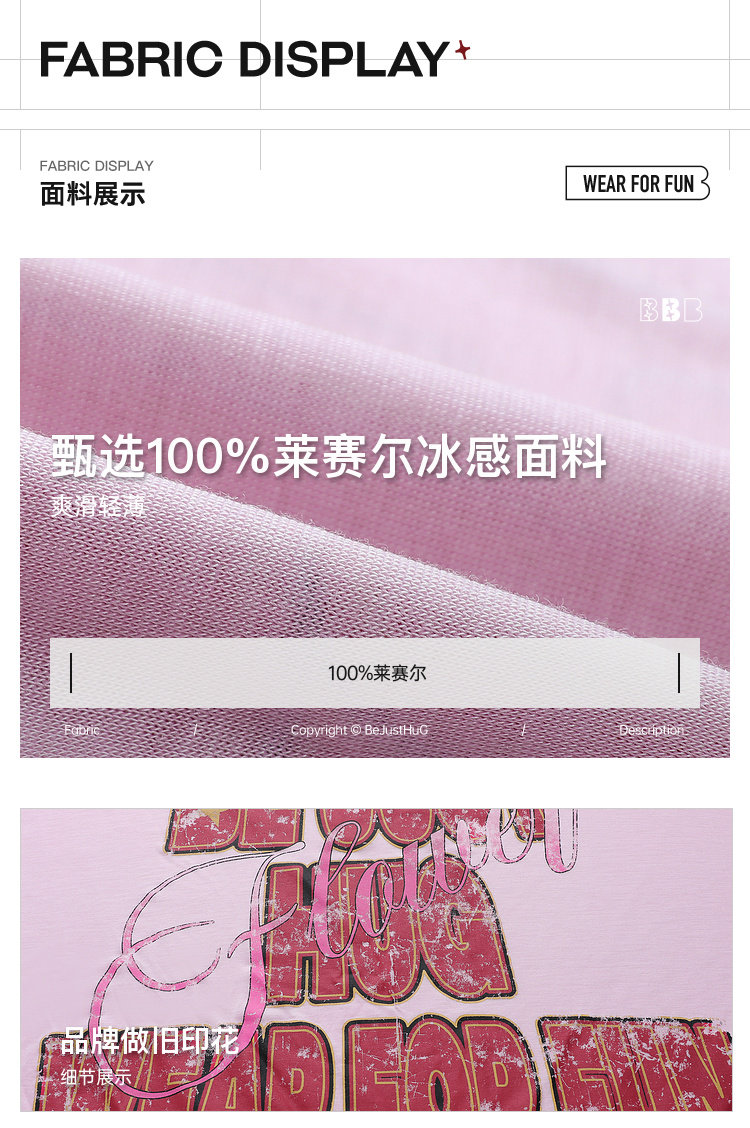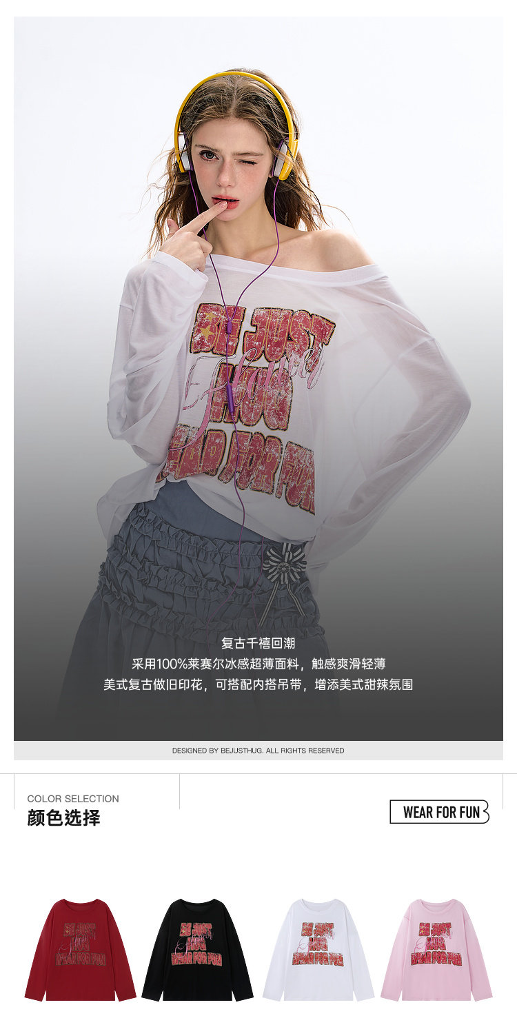 BJHG不计后果 复古印花长袖T恤女夏季冰感莱赛尔极薄宽松百搭罩衫