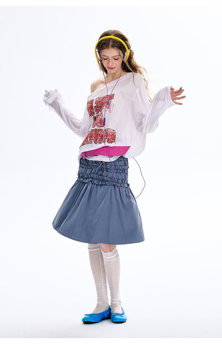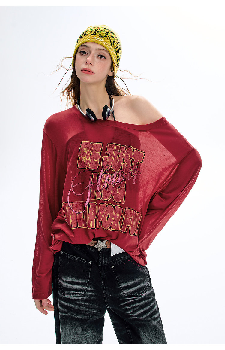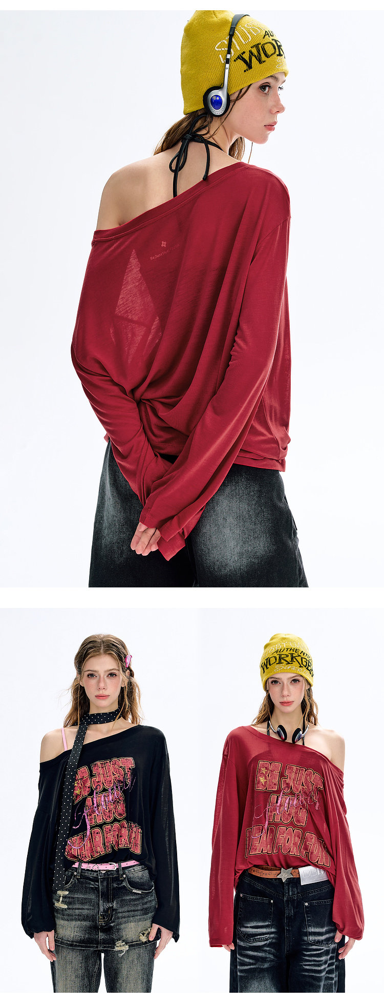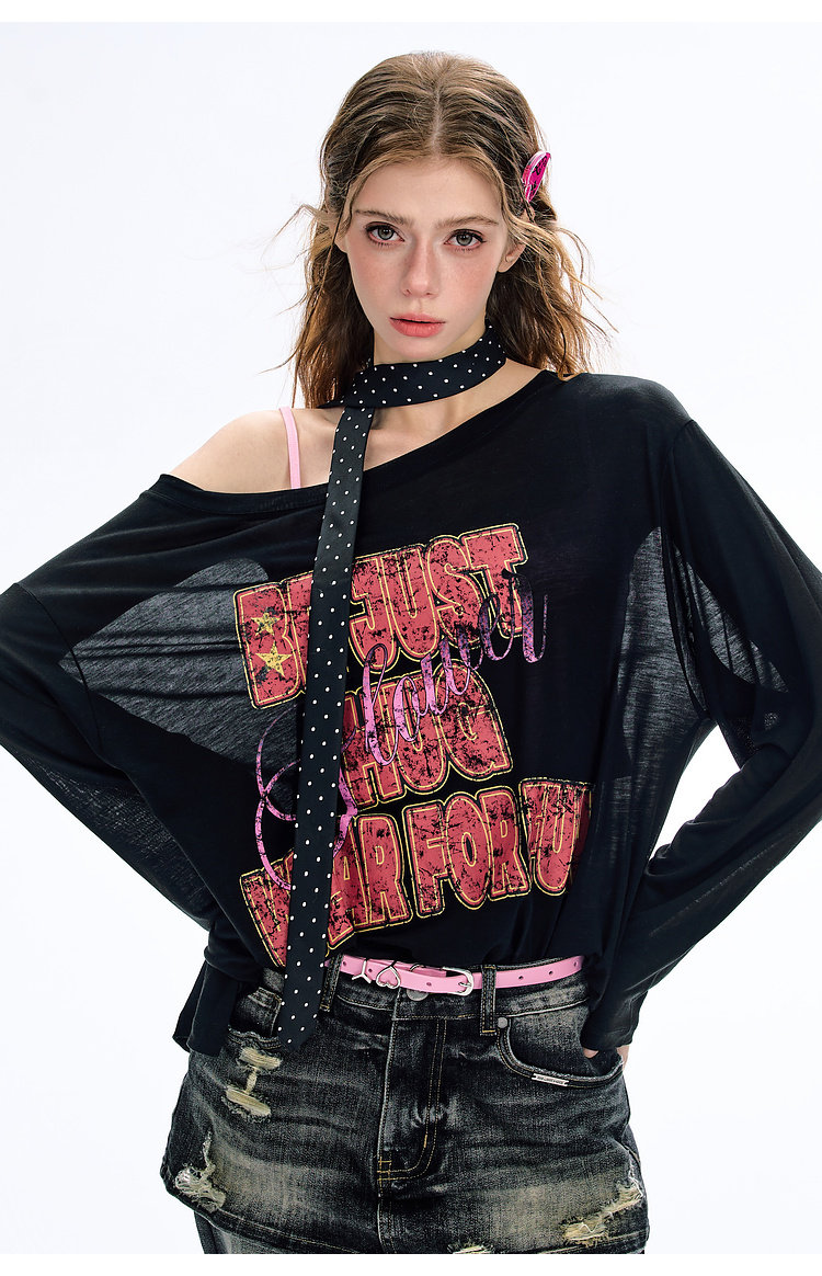 BJHG不计后果 复古印花长袖T恤女夏季冰感莱赛尔极薄宽松百搭罩衫