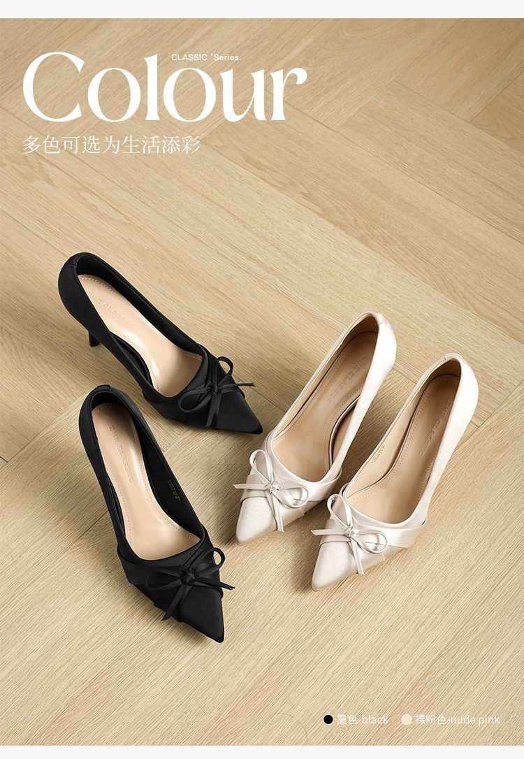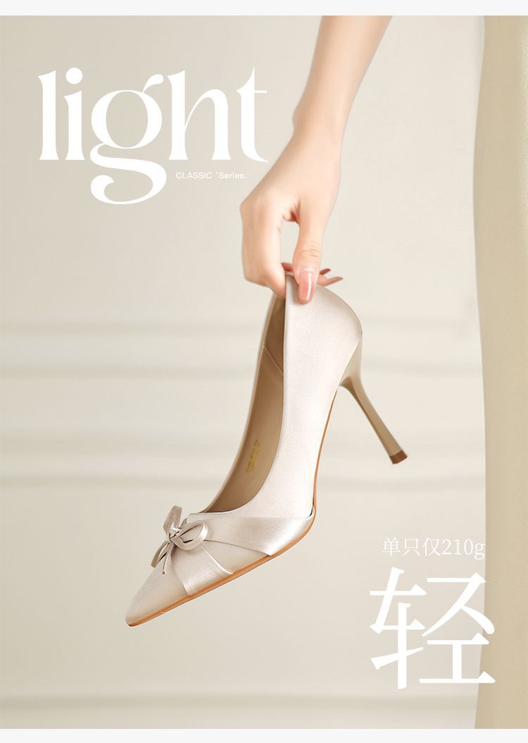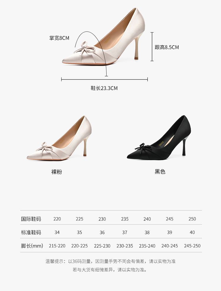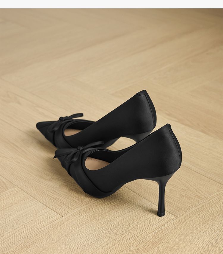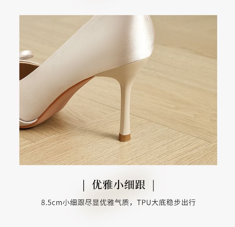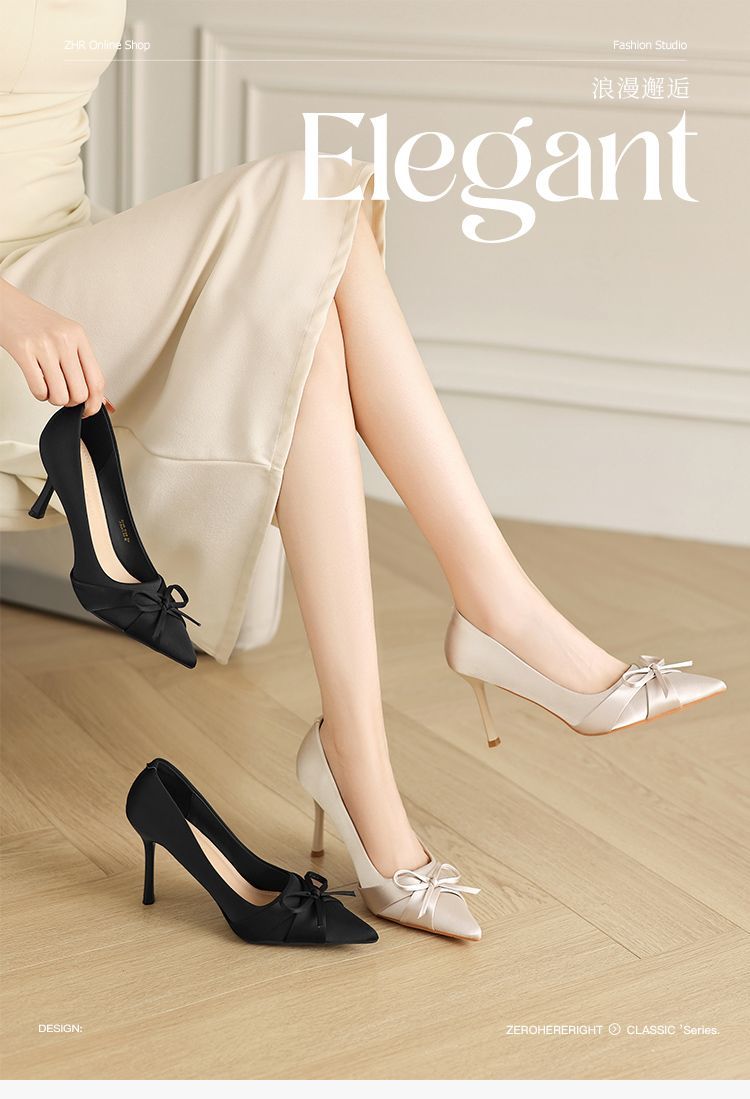 ZHR尖头绸缎帮面蝴蝶结8.5cm增高细跟鞋2026春新款通勤百搭高跟鞋
