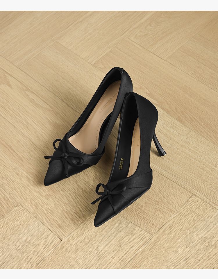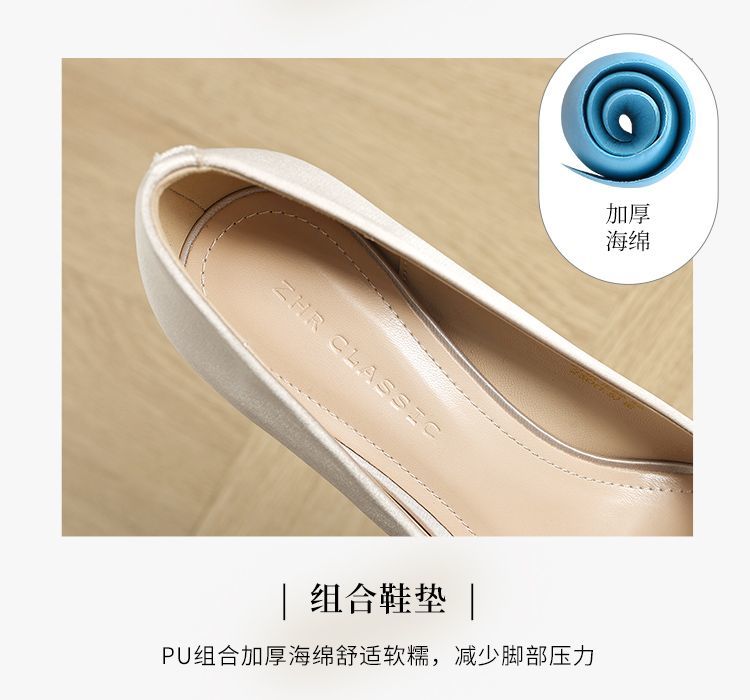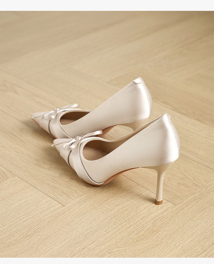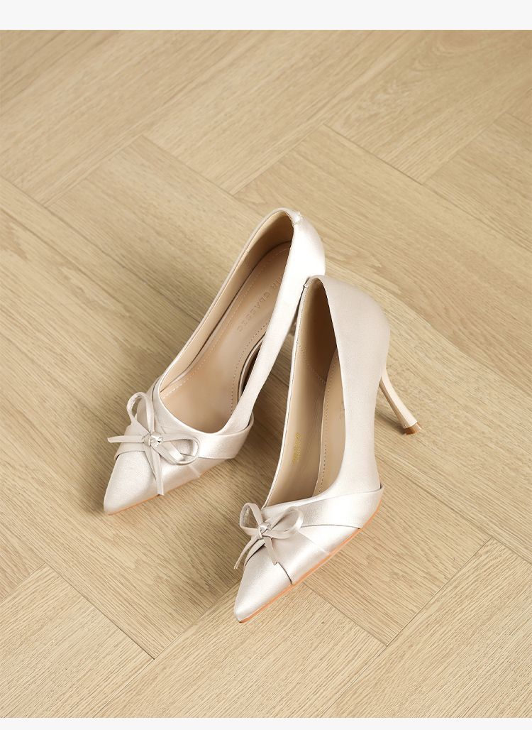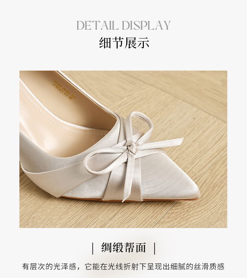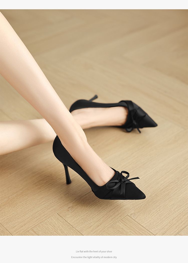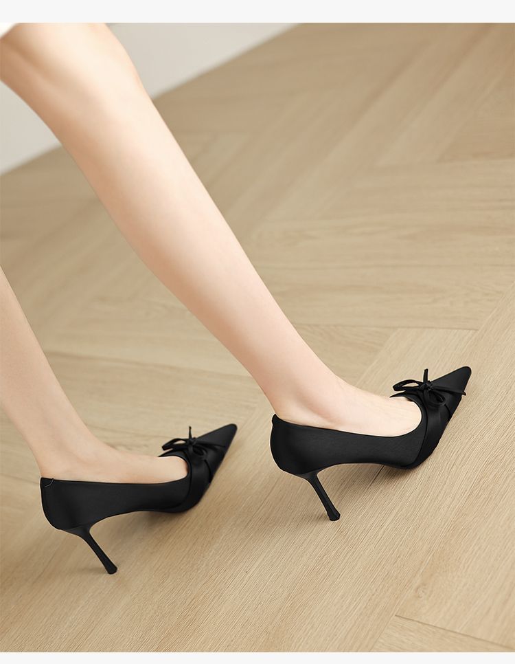 ZHR尖头绸缎帮面蝴蝶结8.5cm增高细跟鞋2026春新款通勤百搭高跟鞋
