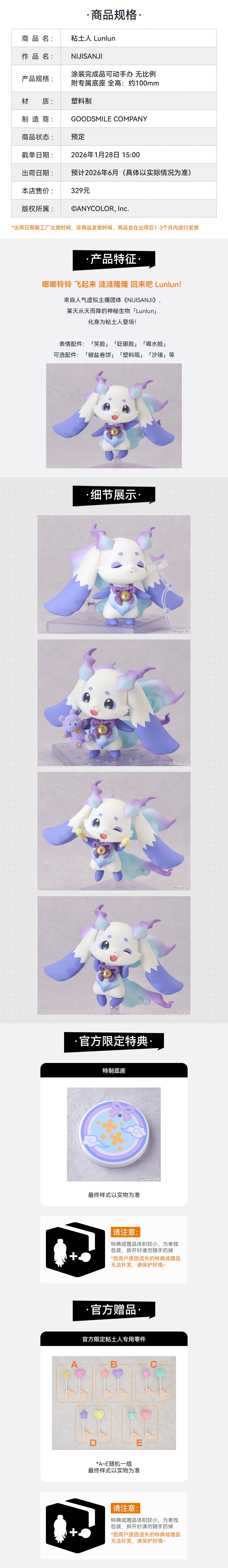 【GSC预售定金】粘土人 Lunlun NIJISANJI 附官方限定特典