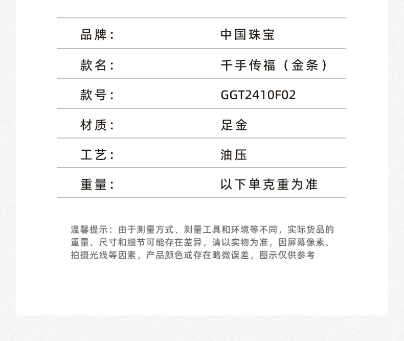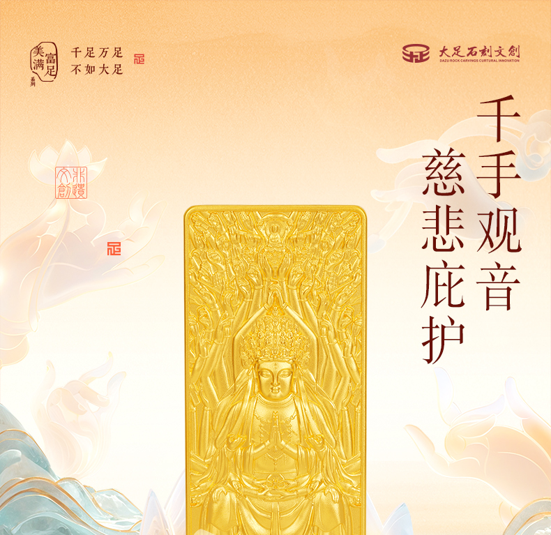 中国珠宝 【大足石刻】系列黄金金条足金千手观音工艺金条投资收藏【Y】