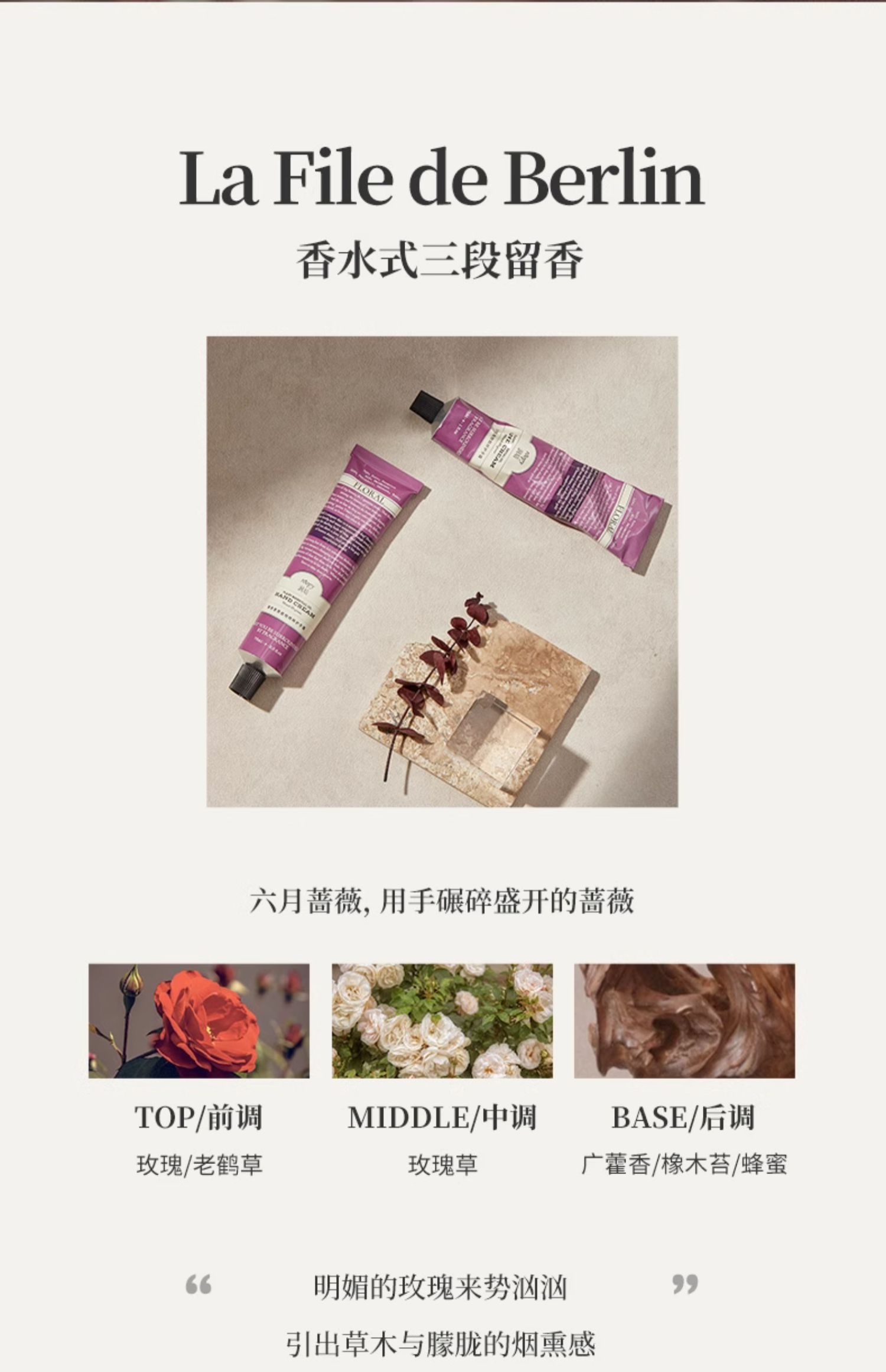 润培馥奇香氛植物精粹护手霜六月蔷薇/暮色人间75g 轻抹间快速吸收 118144/118145