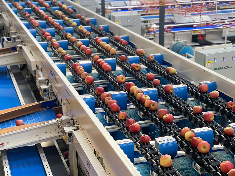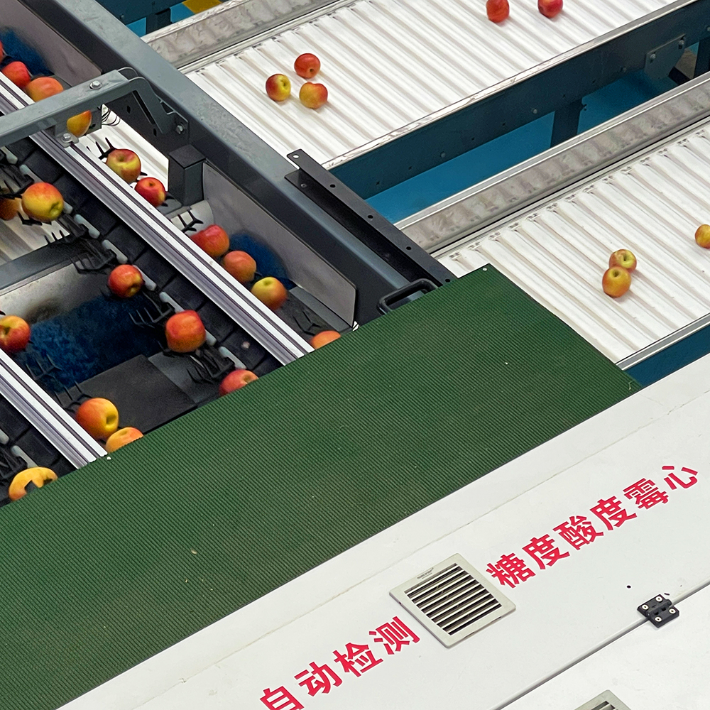 采摘下来的福布瑞斯苹果,每一颗都会经过大型专业分选机器,以糖度、果型等多个标准精挑细选,比人工分选更专业。