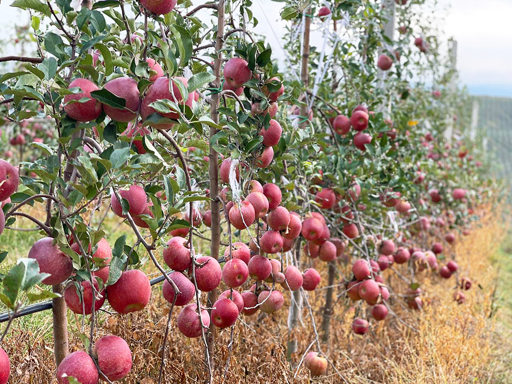 果农采用矮砧密植模式,水肥一体化滴灌,不套袋种植,让福布瑞斯苹果露天晒足全年的阳光!