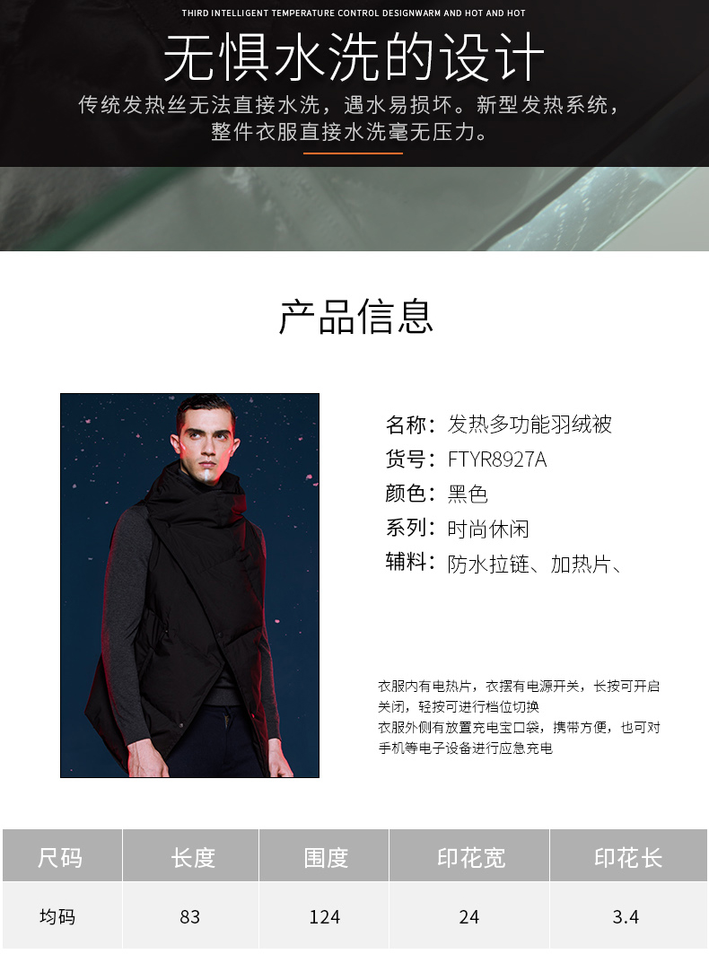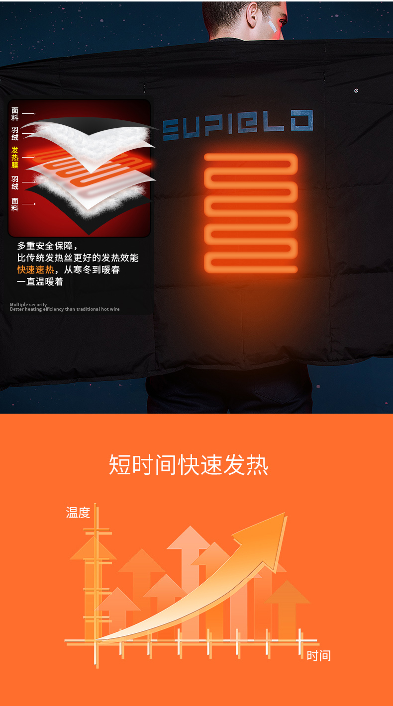 Supield素湃黑科技智能温控加热鹅绒羽绒服男多功能可穿戴鹅绒被