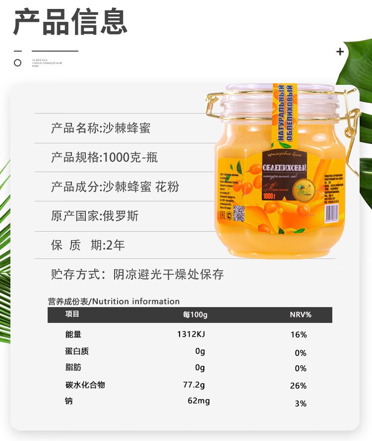 俄罗斯俄蜜源沙棘蜜1000g/033723 天然健康喝的放心