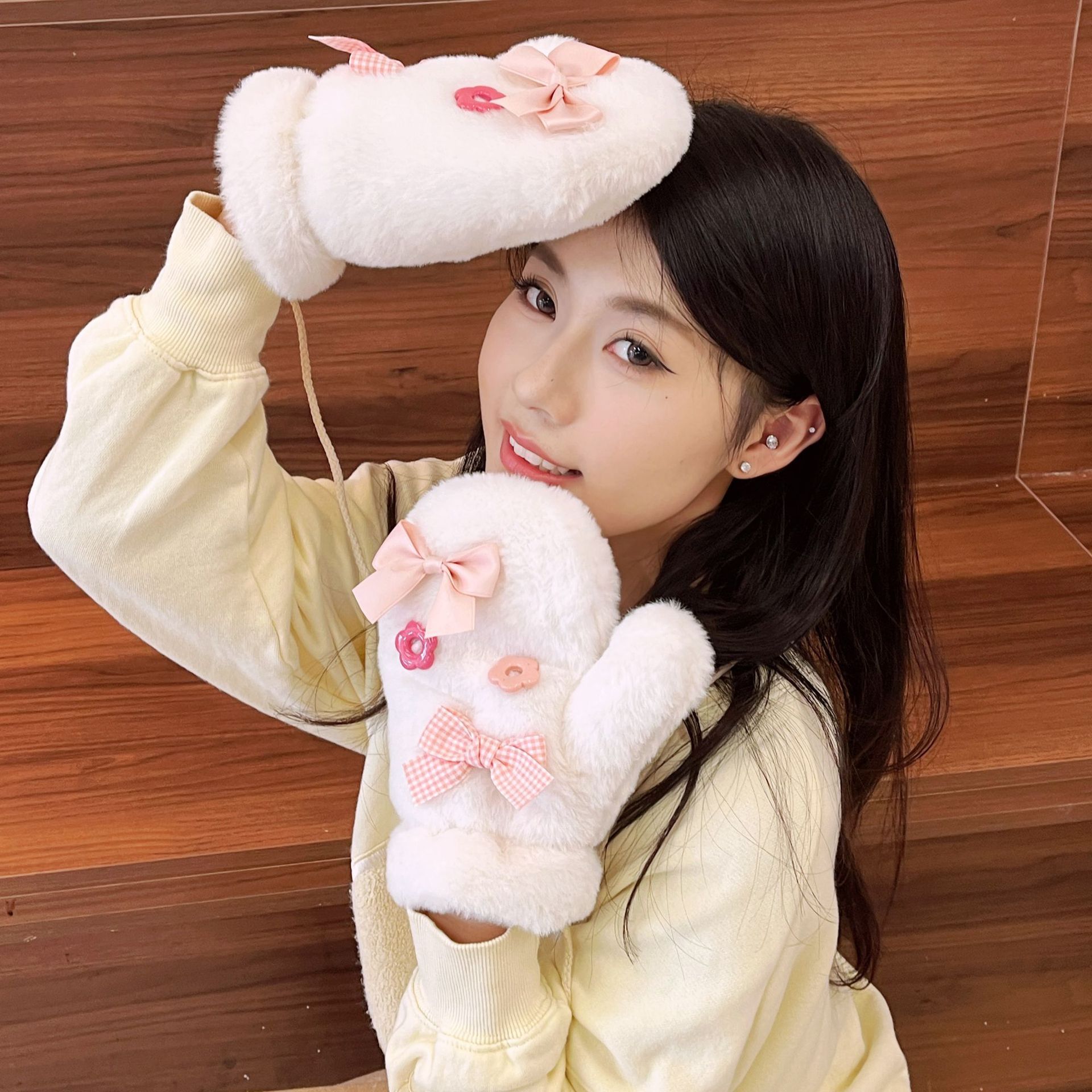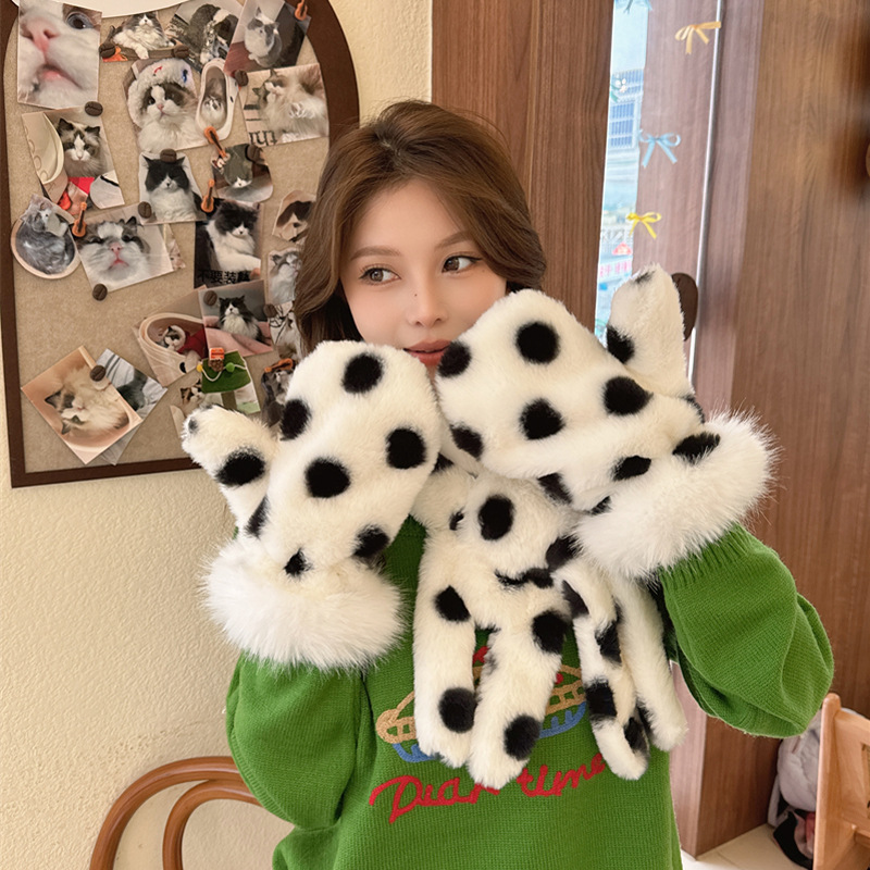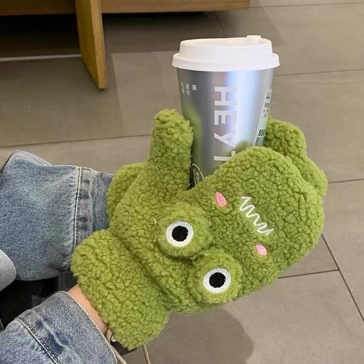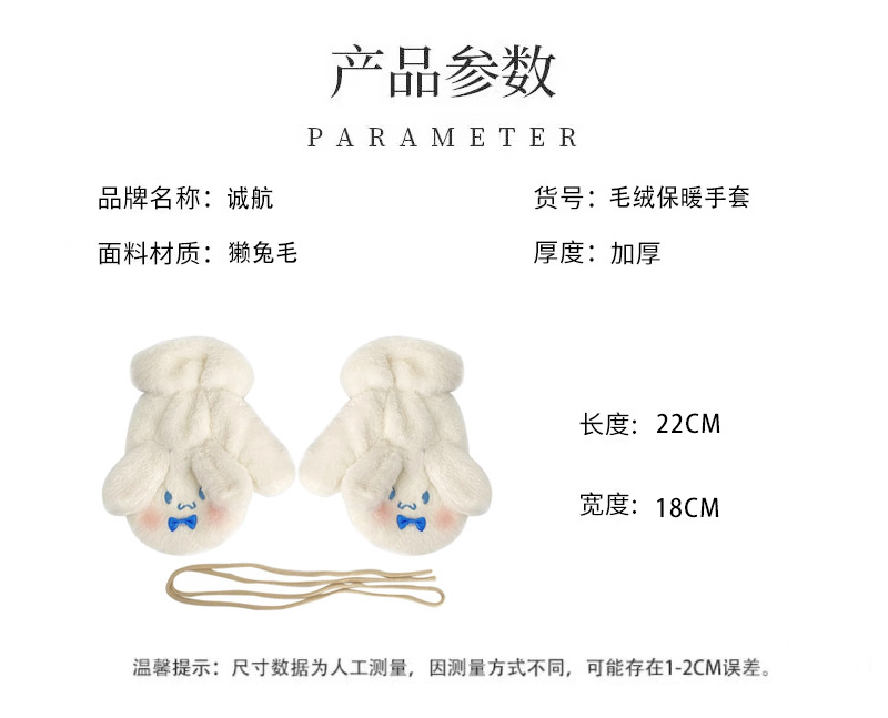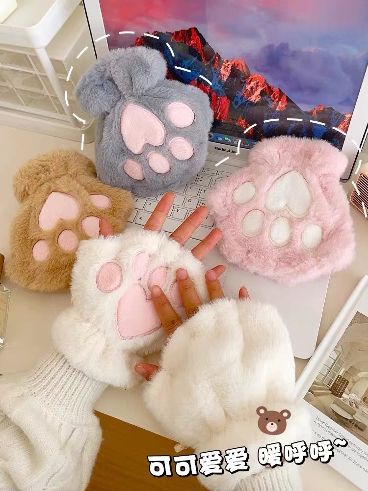 冬季【毛绒手套】可爱女韩系连指手套 加厚发热卡通学生冬天保暖手套骑行