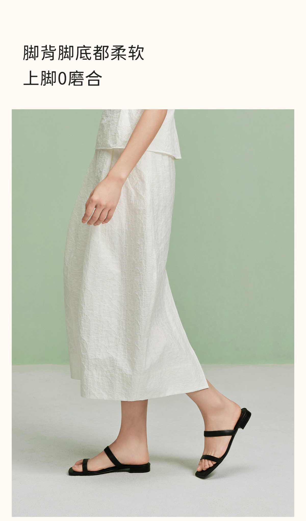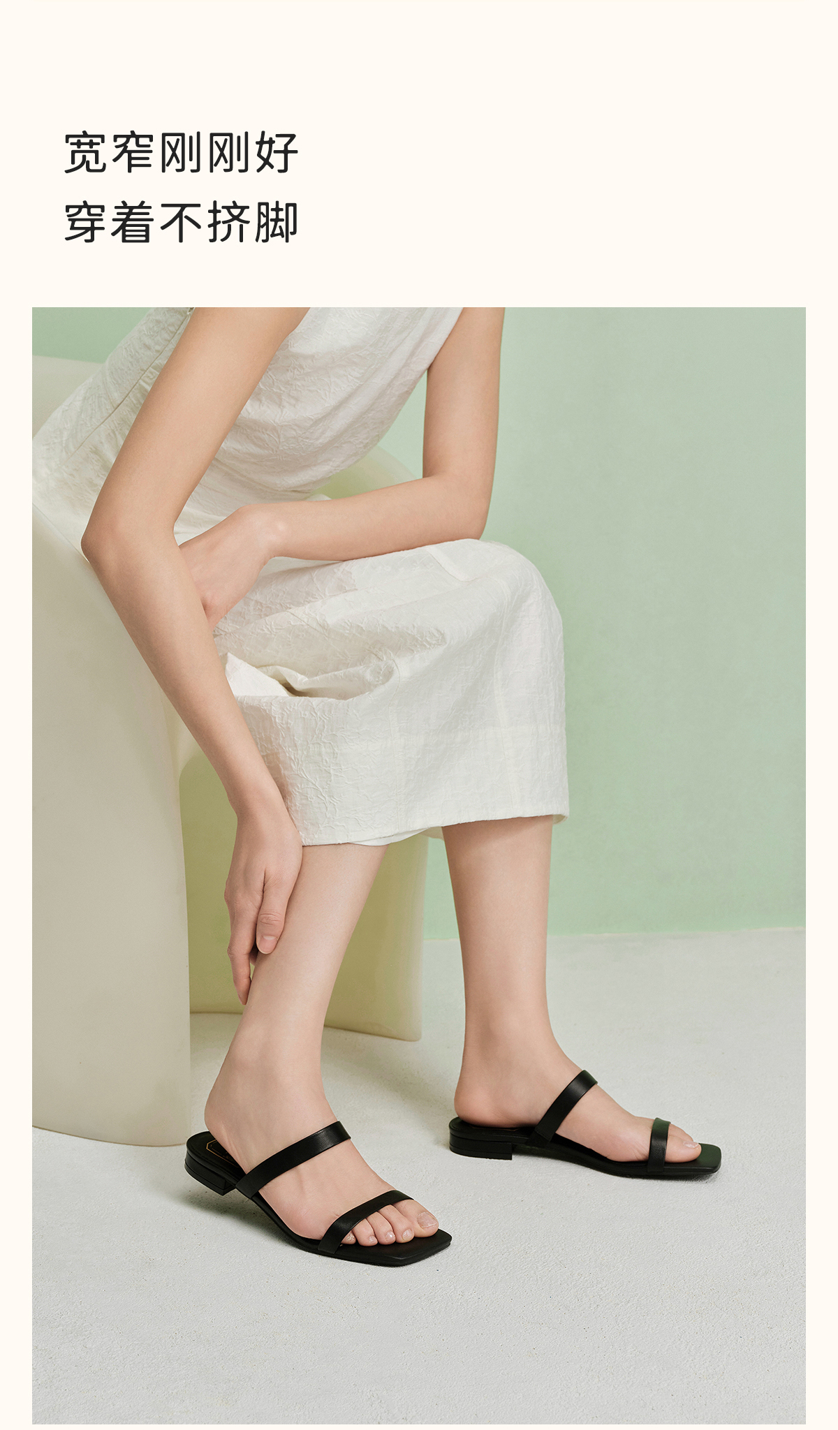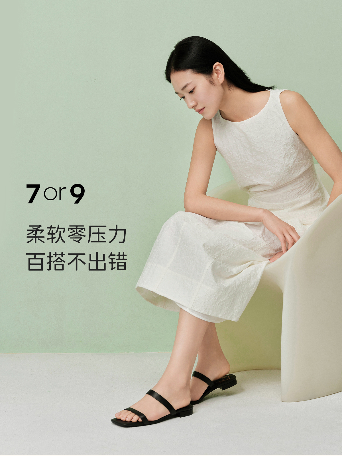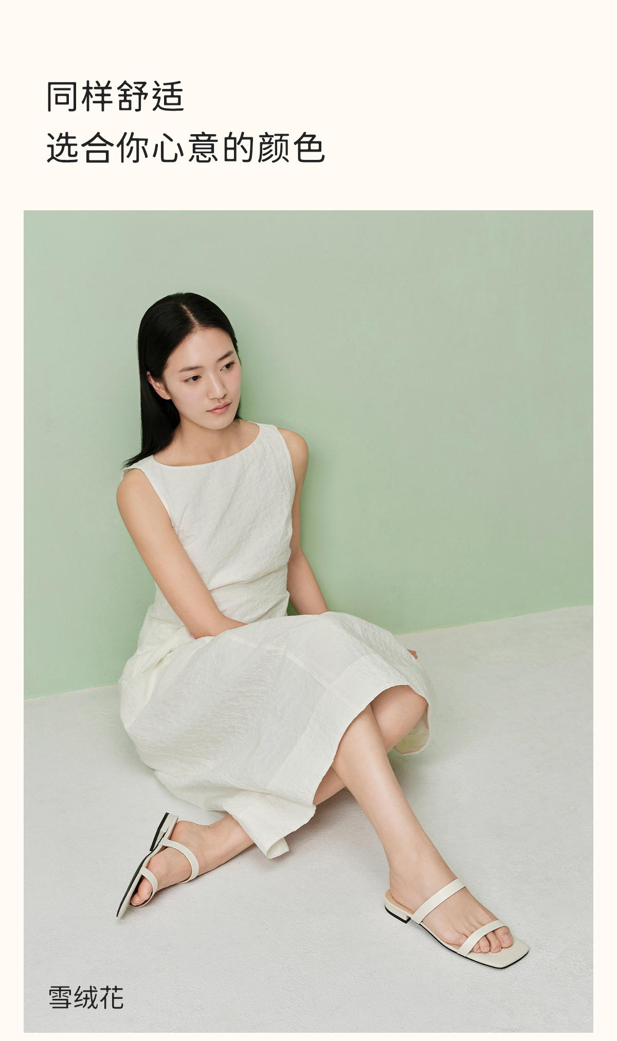 7or9露趾凉鞋平底一字带拖鞋雪绒花