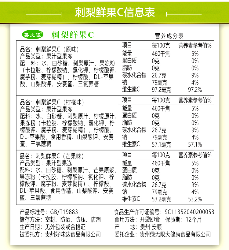 L果夫派刺梨鲜果C-3味混合休闲装400g