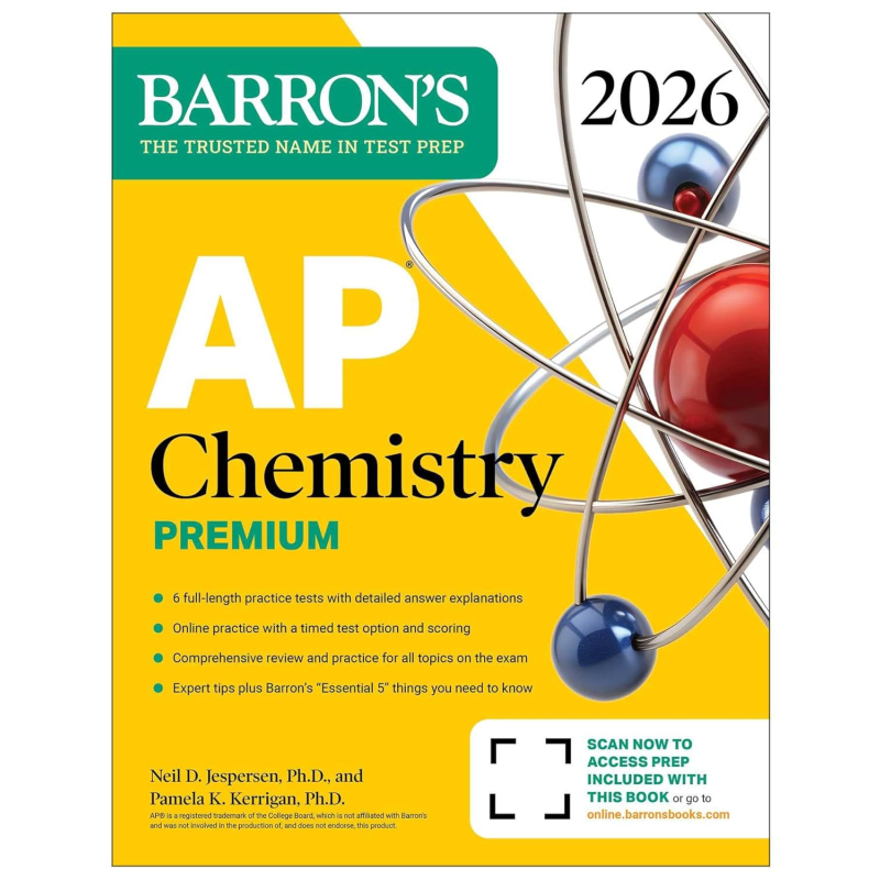 Barron’s AP Chemistry Premium, 2026 includes in‑depth content review and practice. It’s the only book you’ll need to be prepared for exam day.