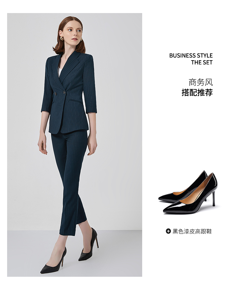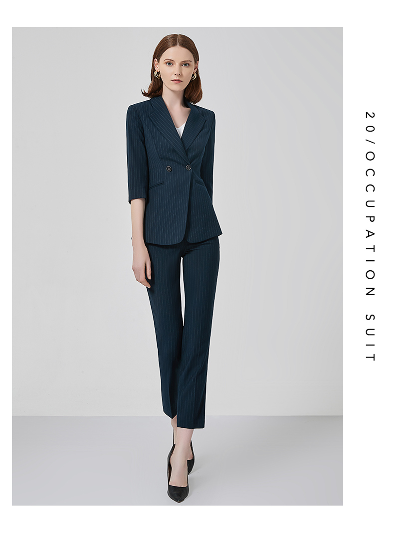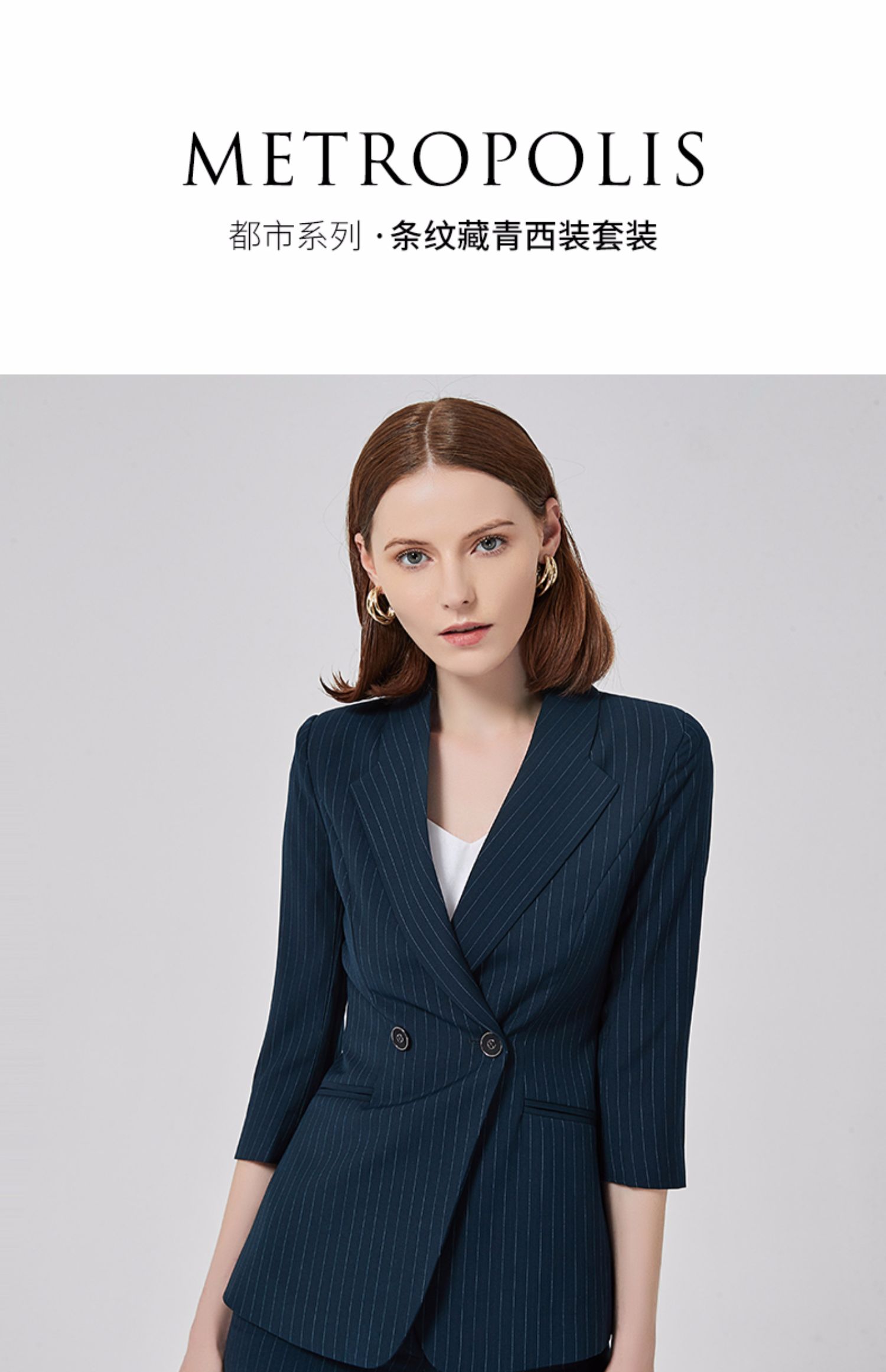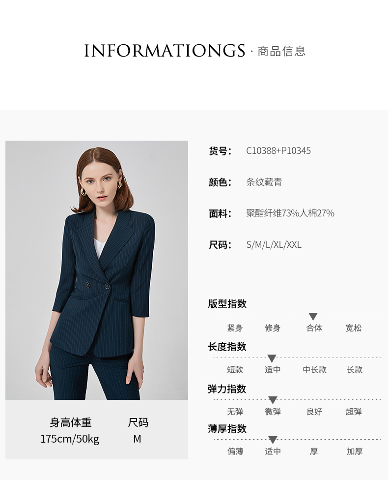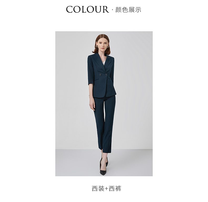 IWY/条纹西装套装女高端商务职业装时尚气质修身显瘦正装通勤工作服OLC10388+P10345