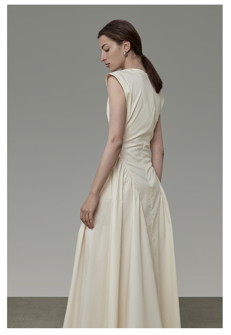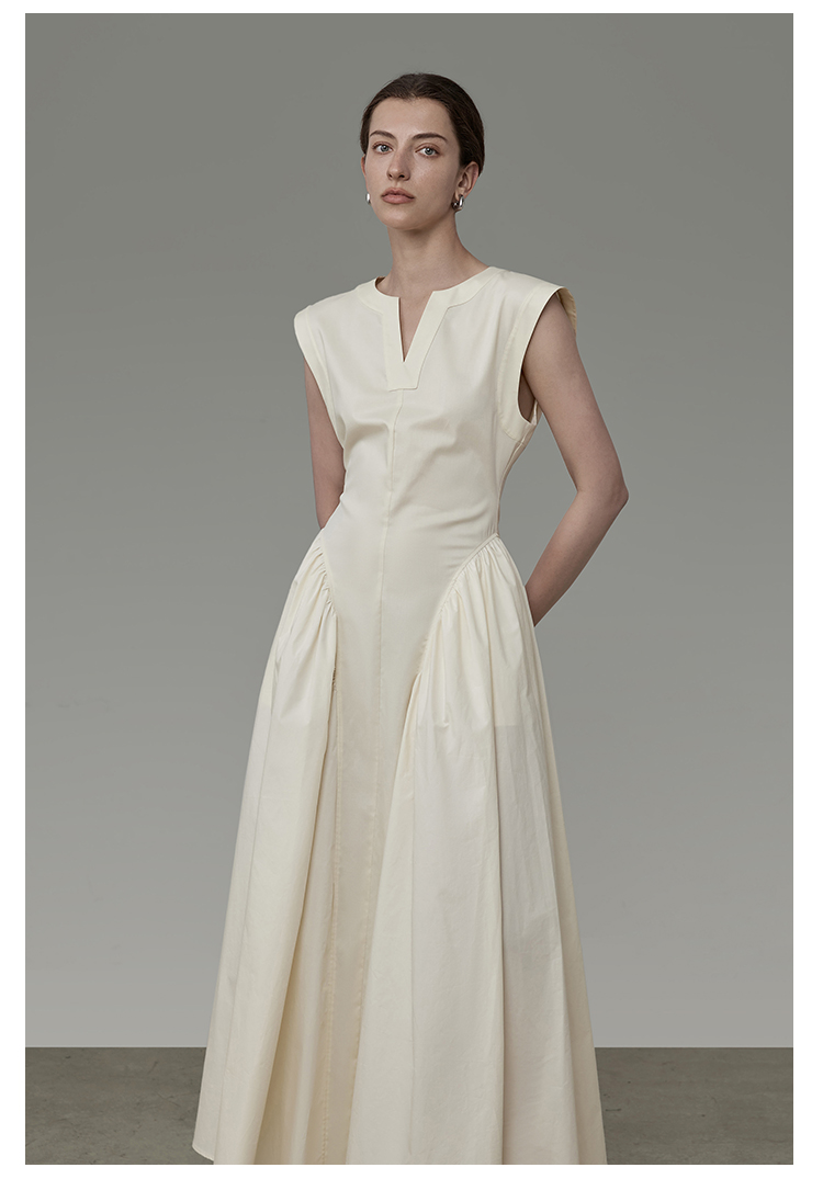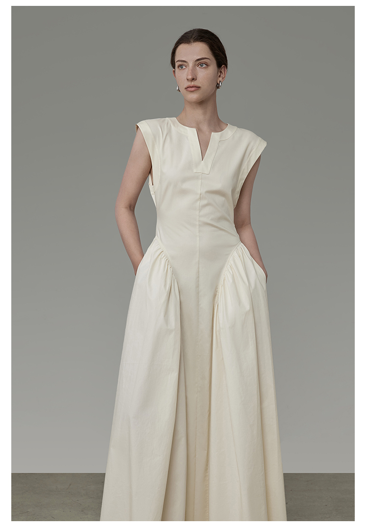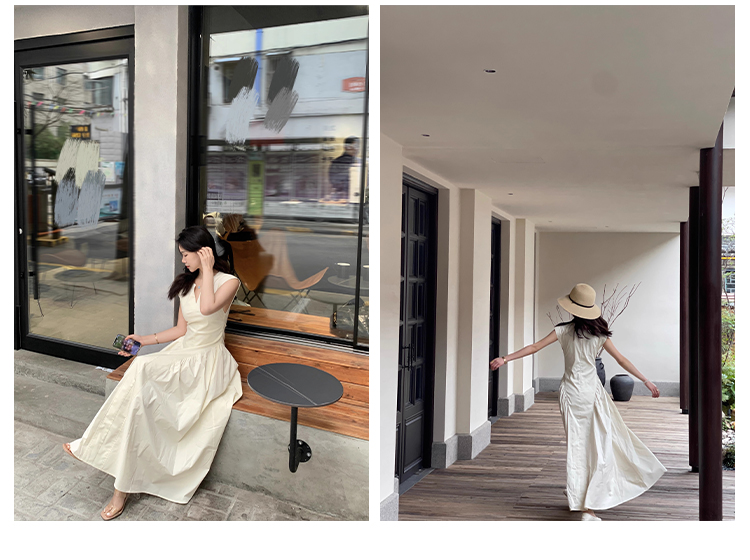 白色法式连衣裙女夏2023新款无袖收腰显瘦裙子小众设计感时尚简约