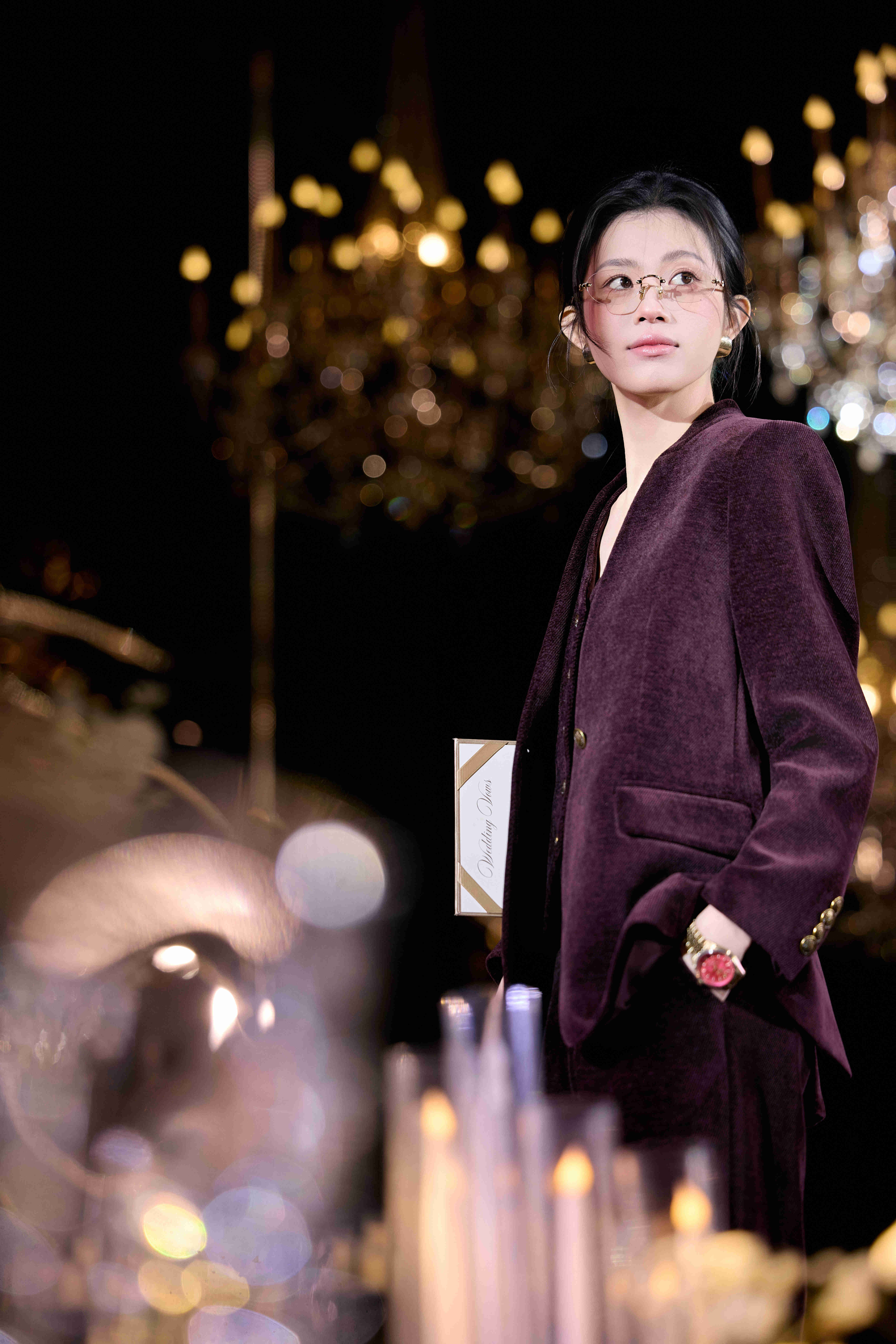 法小曼*子珍红色西装马甲西裤三件套高级年会女强人西服套装