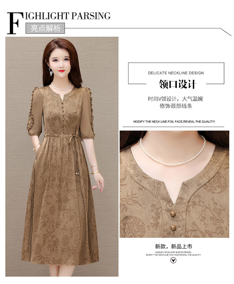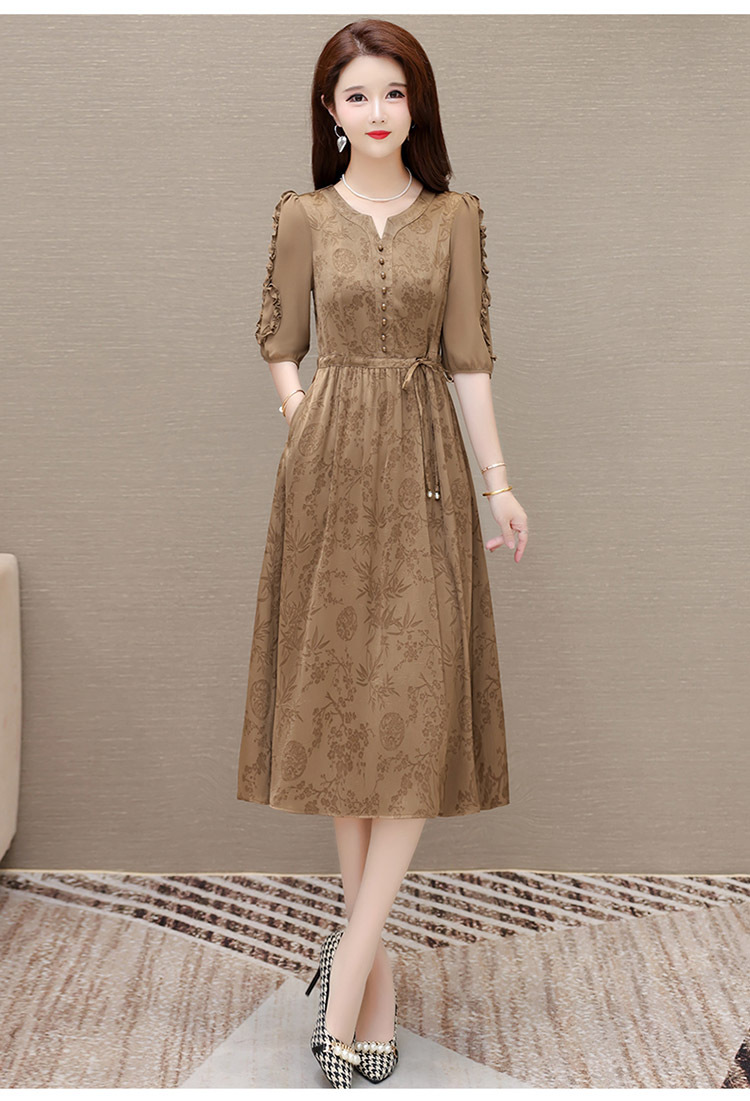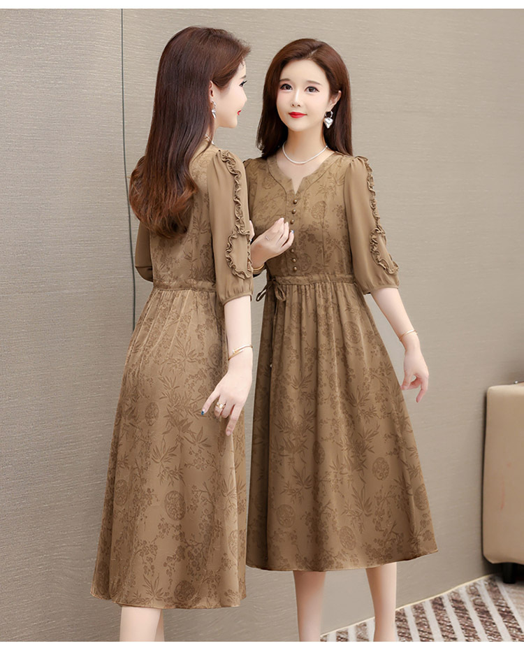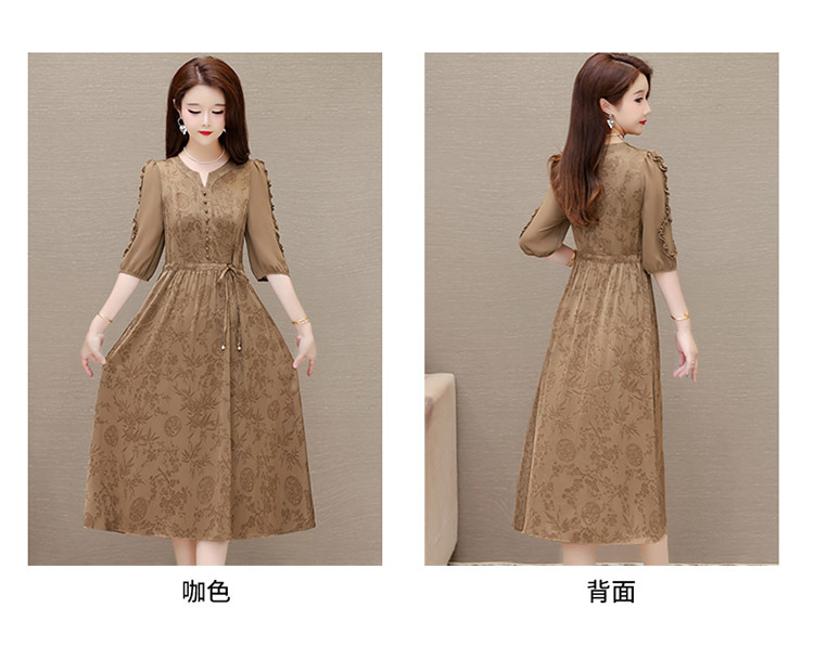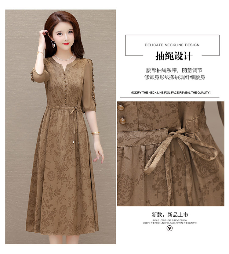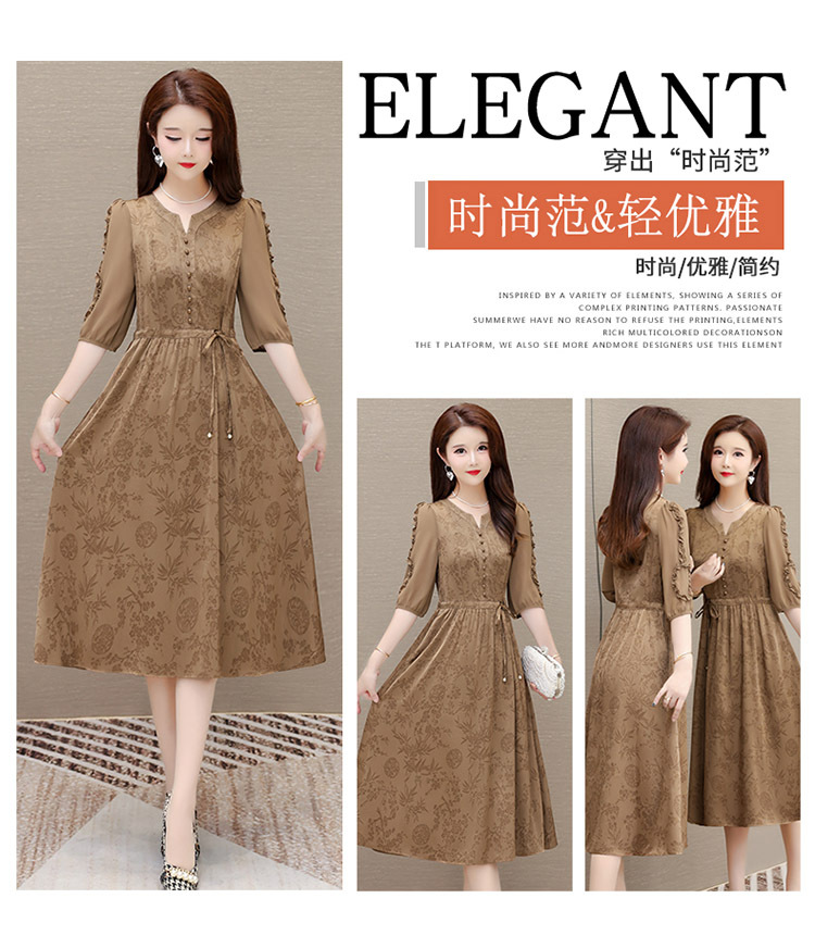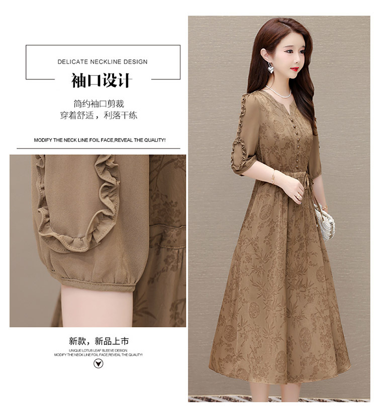 印花连衣裙优雅,木耳边中袖时尚气质A字裙QYM- LRX-1714C107-Y