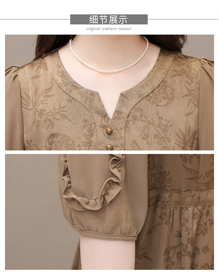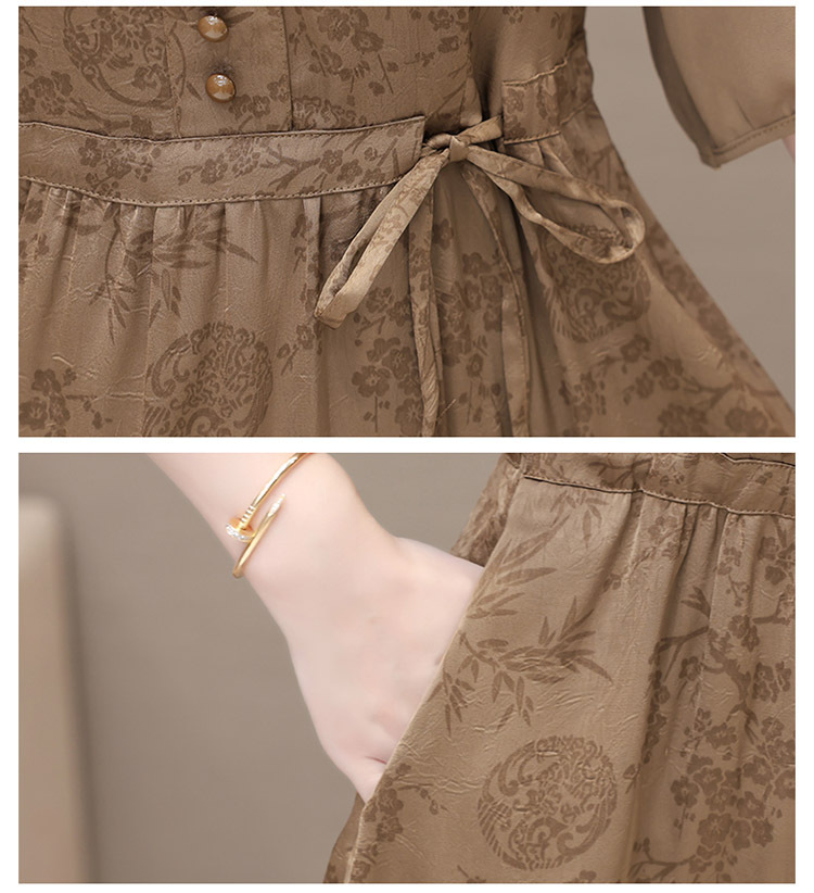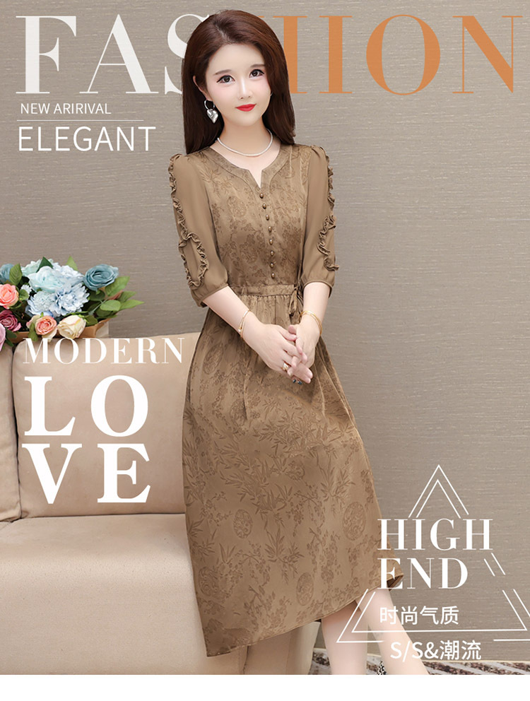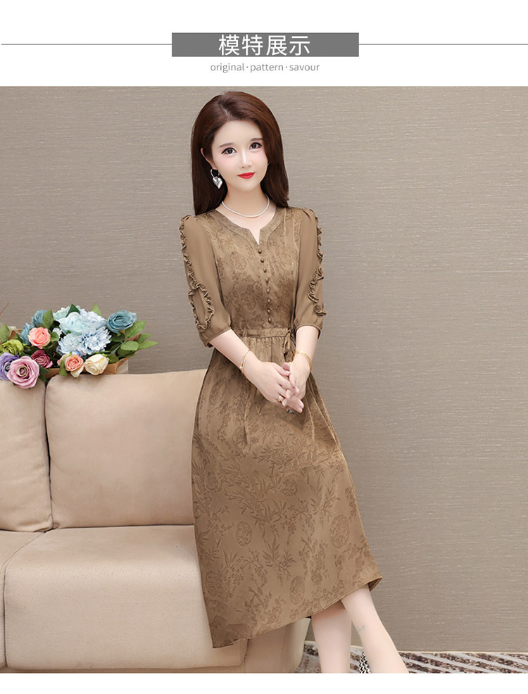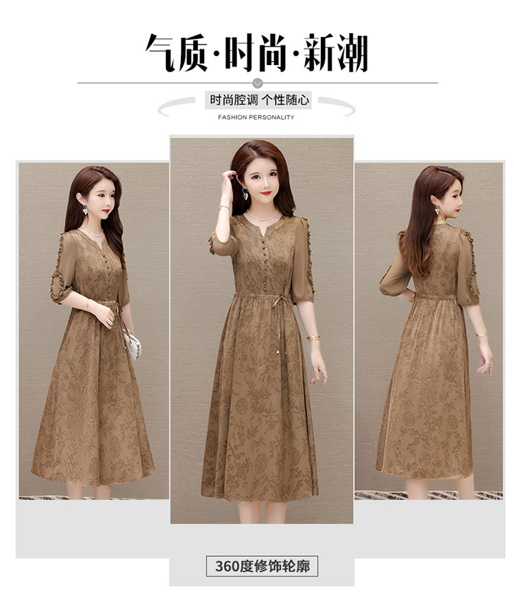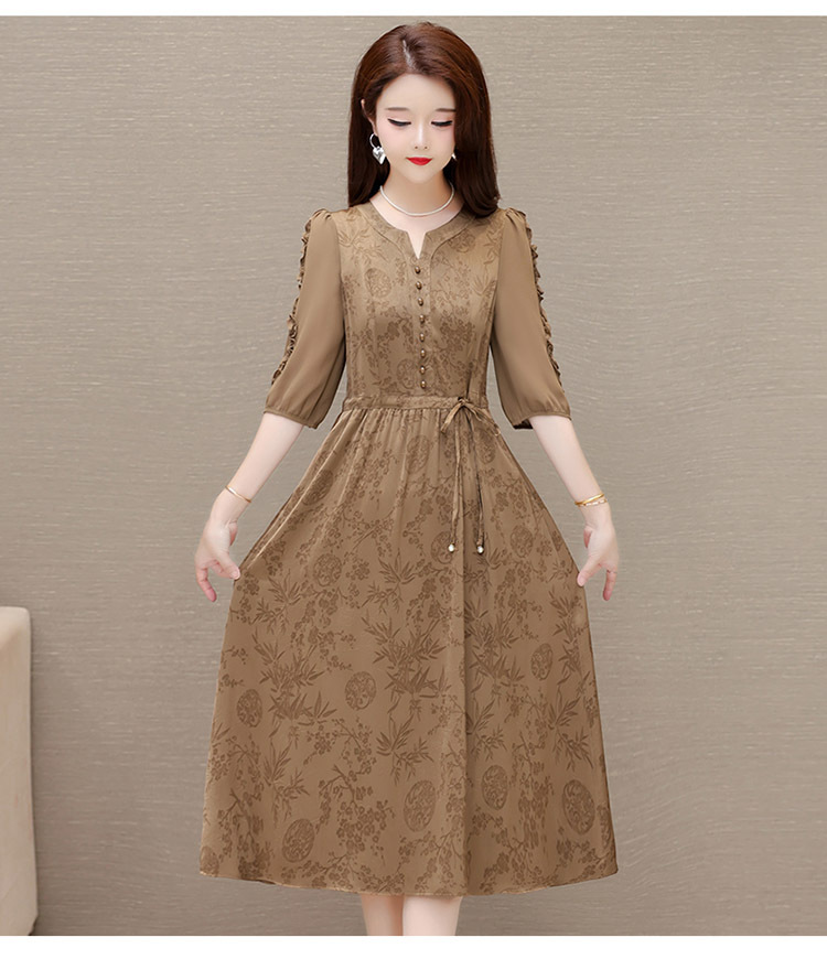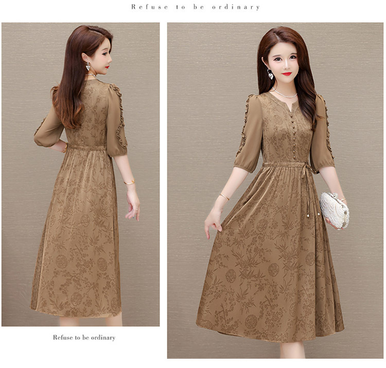 印花连衣裙优雅,木耳边中袖时尚气质A字裙QYM- LRX-1714C107-Y