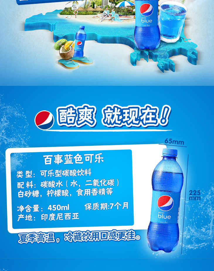 印尼蓝色百事可乐汽水450ml