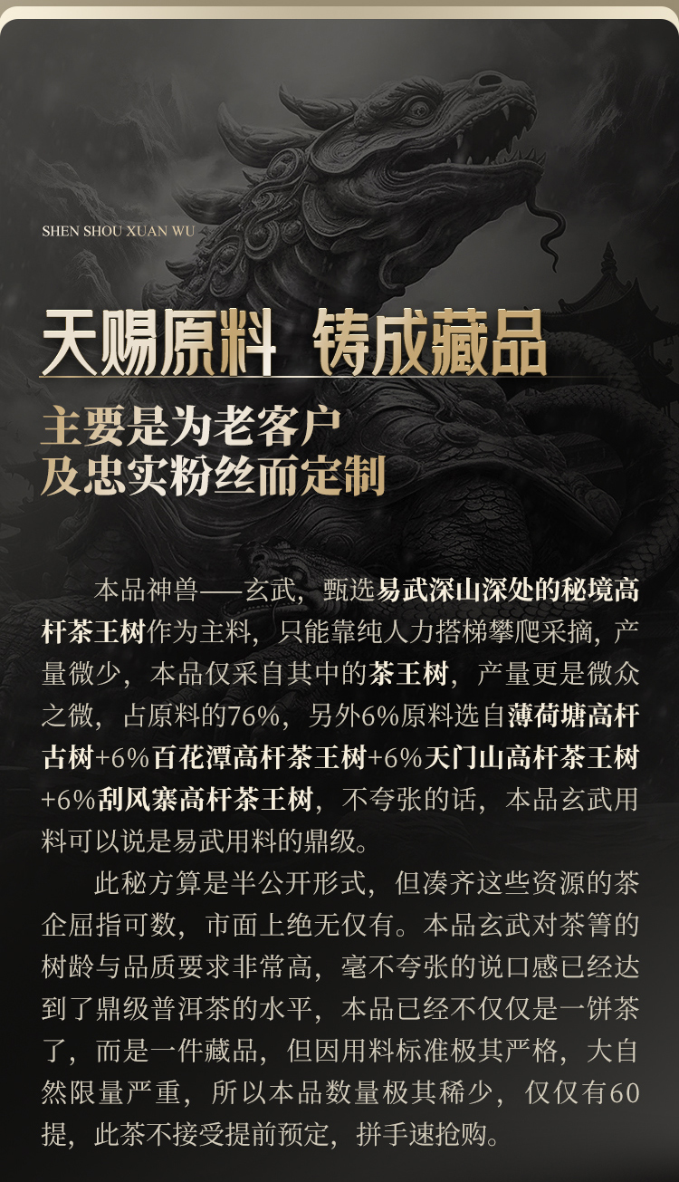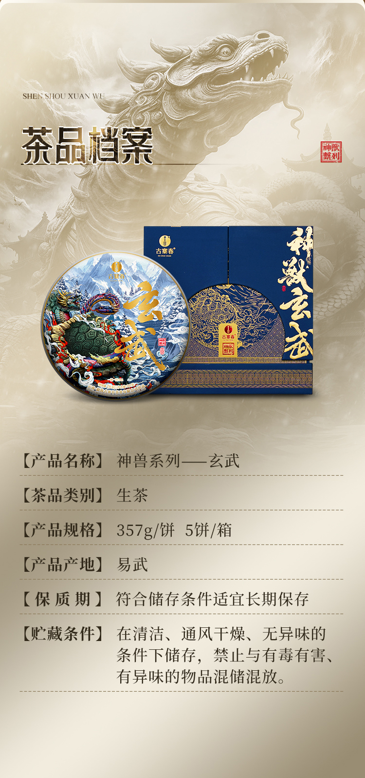 【神兽—玄武】2024年春茶 已入选易武博物馆 神兽事业部独立出品 普洱茶生茶 1箱内含5饼*357克礼盒装 拍5箱发6箱