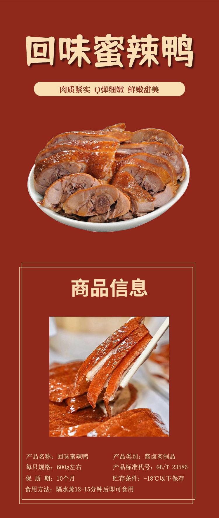 回味蜜辣鸭600g左右/只,鲜嫩美味,微辣,Q弹细嫩,吮指回味