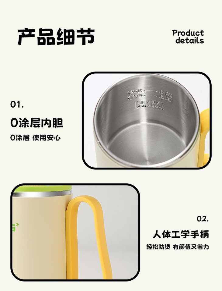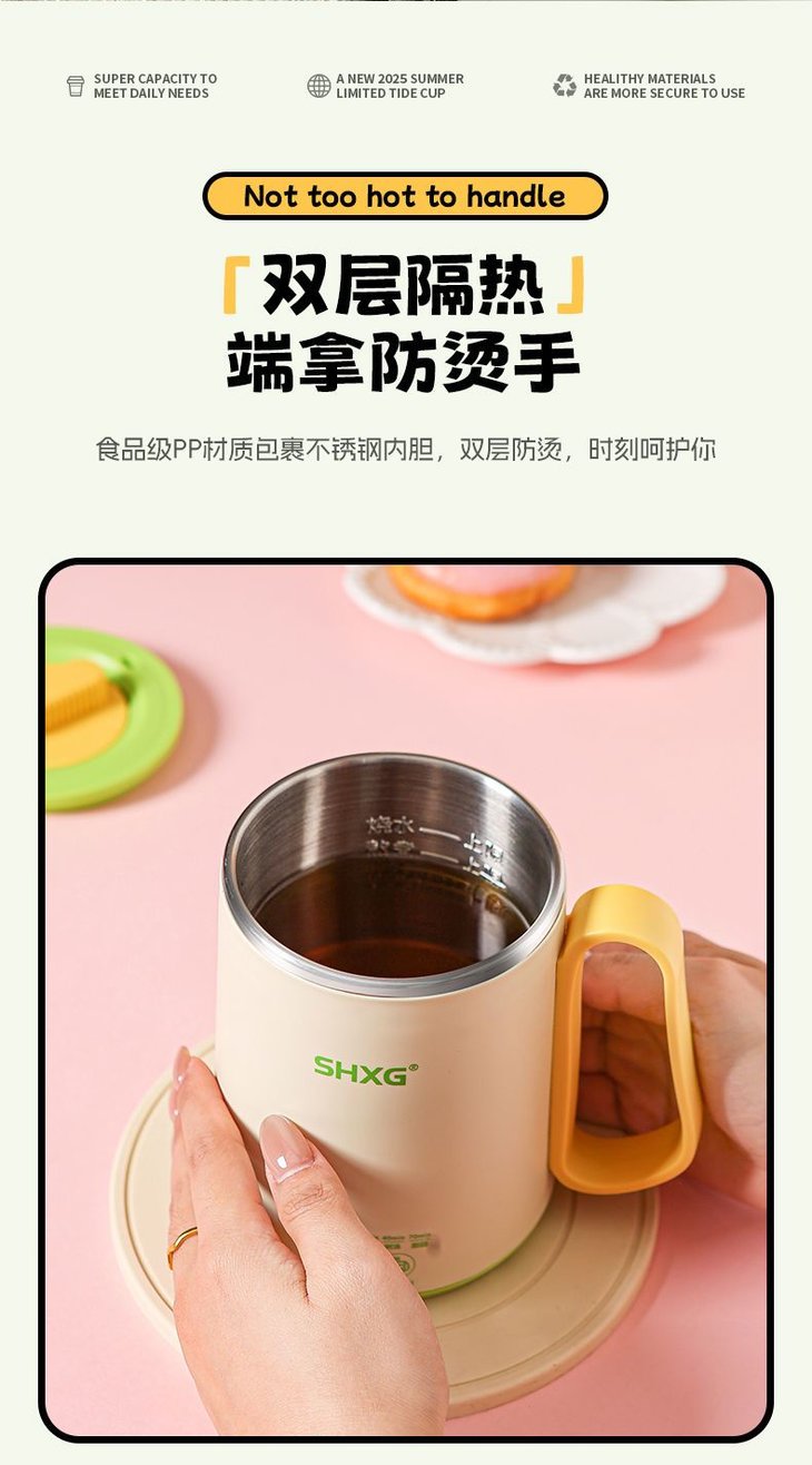 隔热防烫,端杯不烫手 双层隔热,手柄加持直接端杯喝也不怕烫