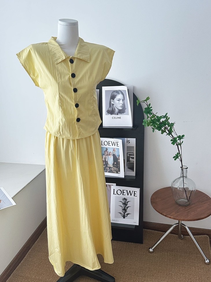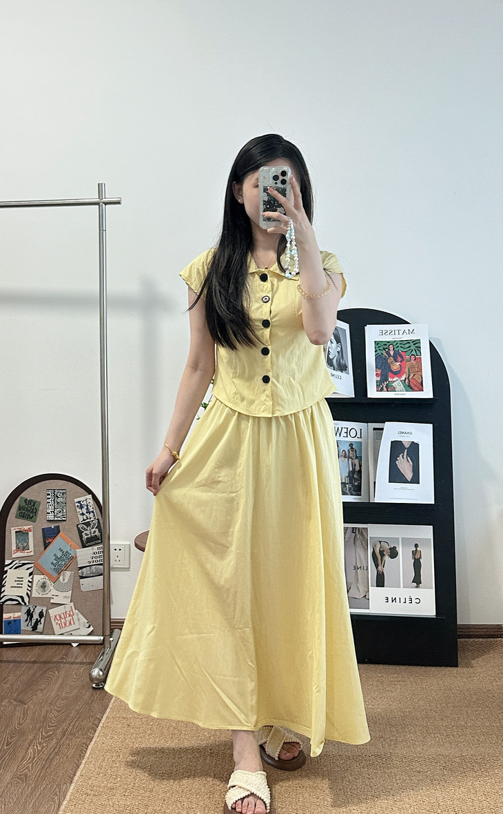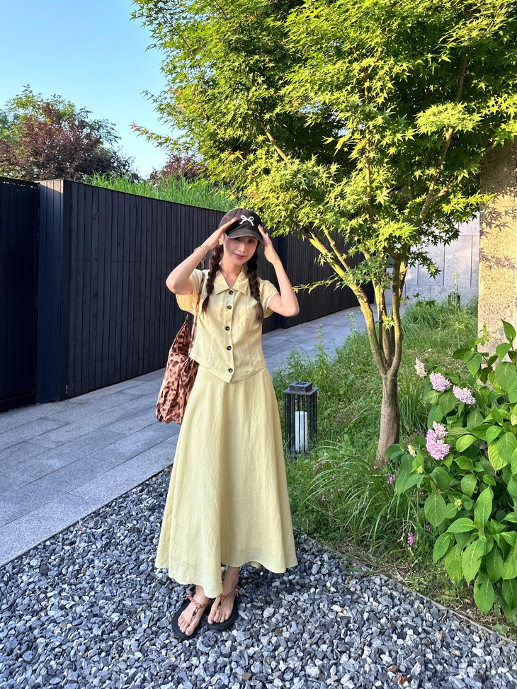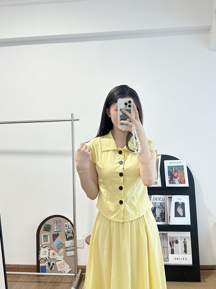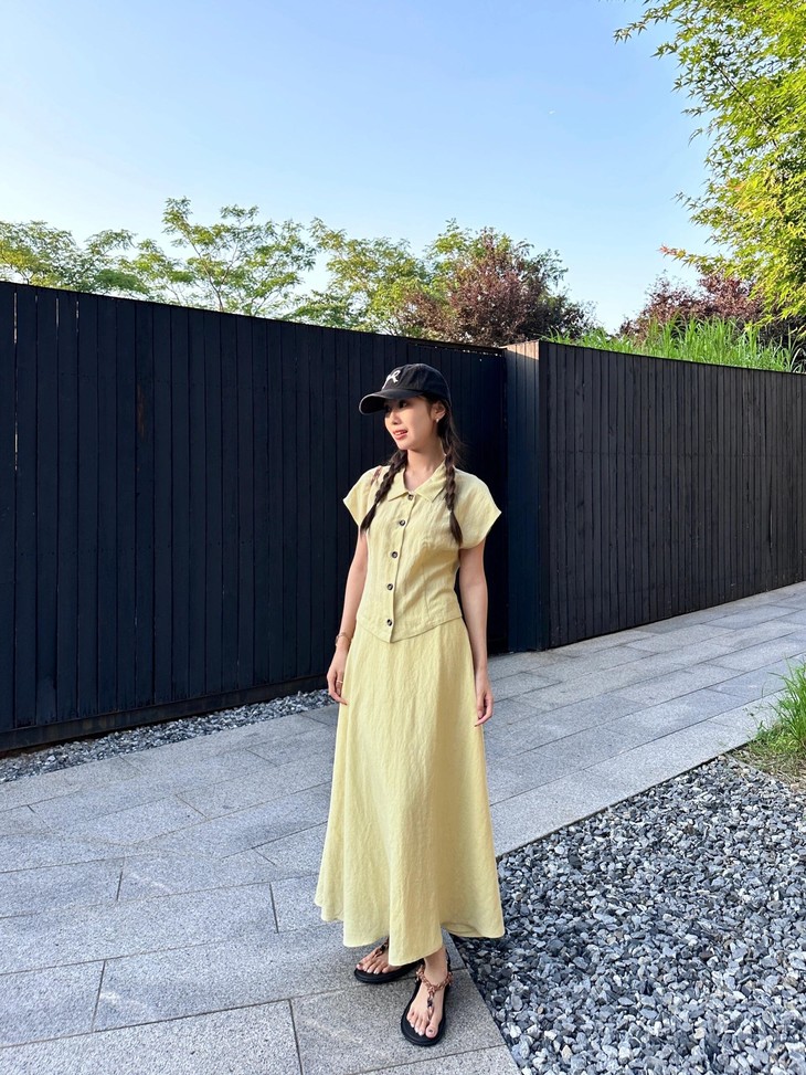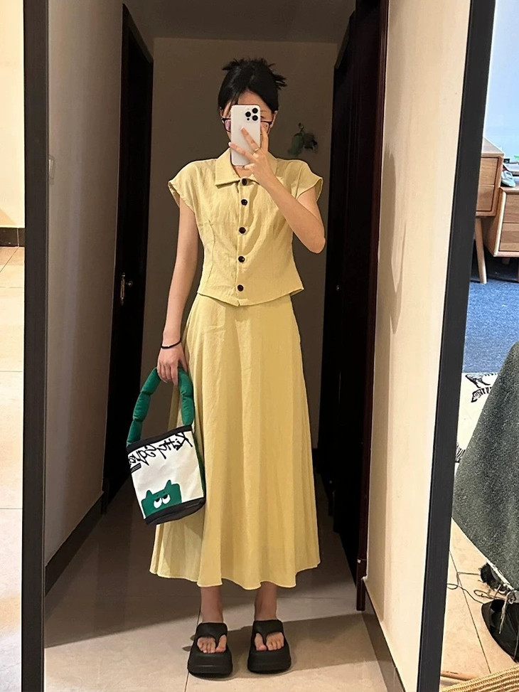 日常单穿都很时髦‼️官搭及分开搭配都很实穿 夏日清爽福利 撞色纽扣设计 A字版型半身裙 裙摆量很大 柔软的面料,亲肤度也很高 团长细节实拍⬇️⬇️⬇️
