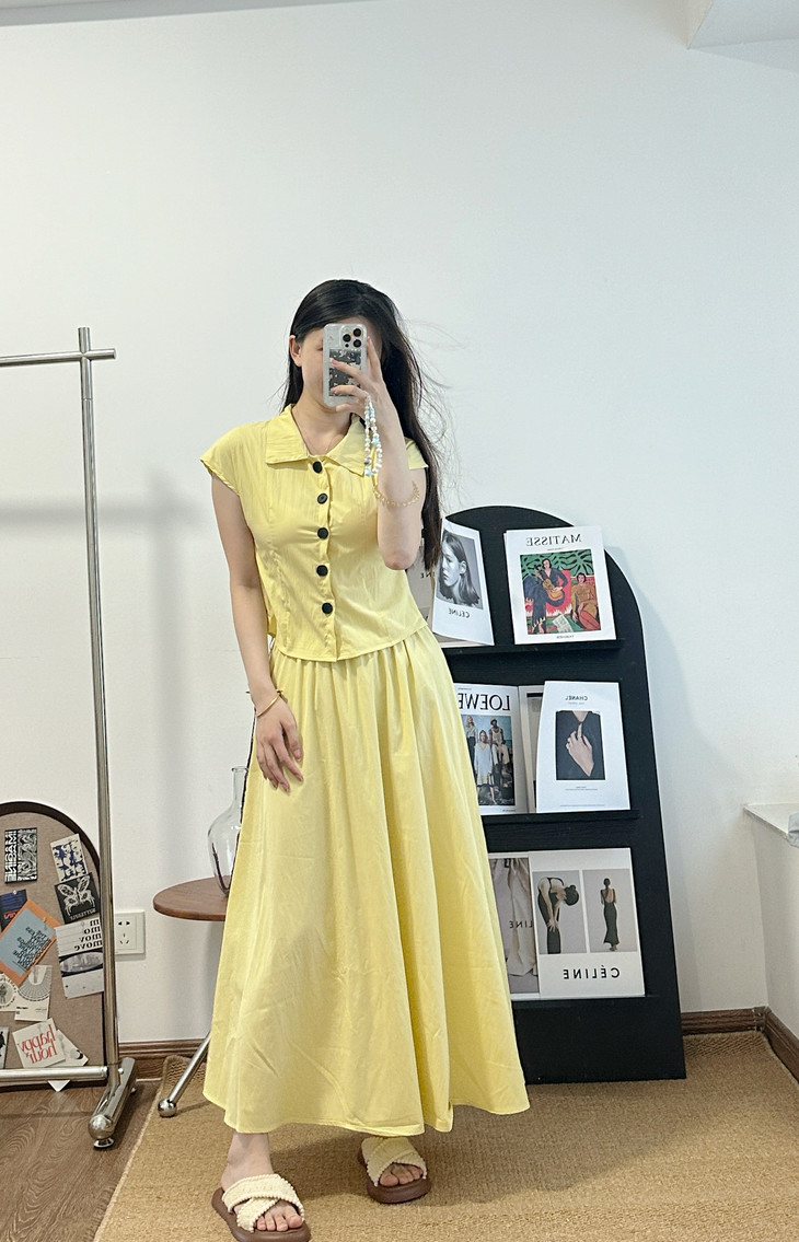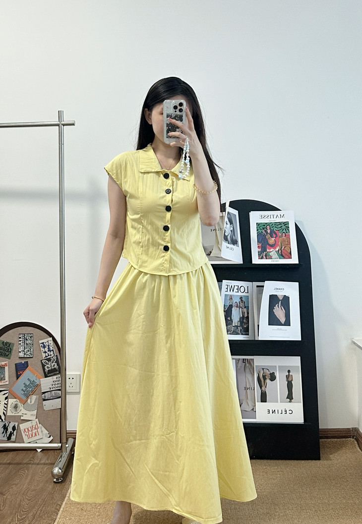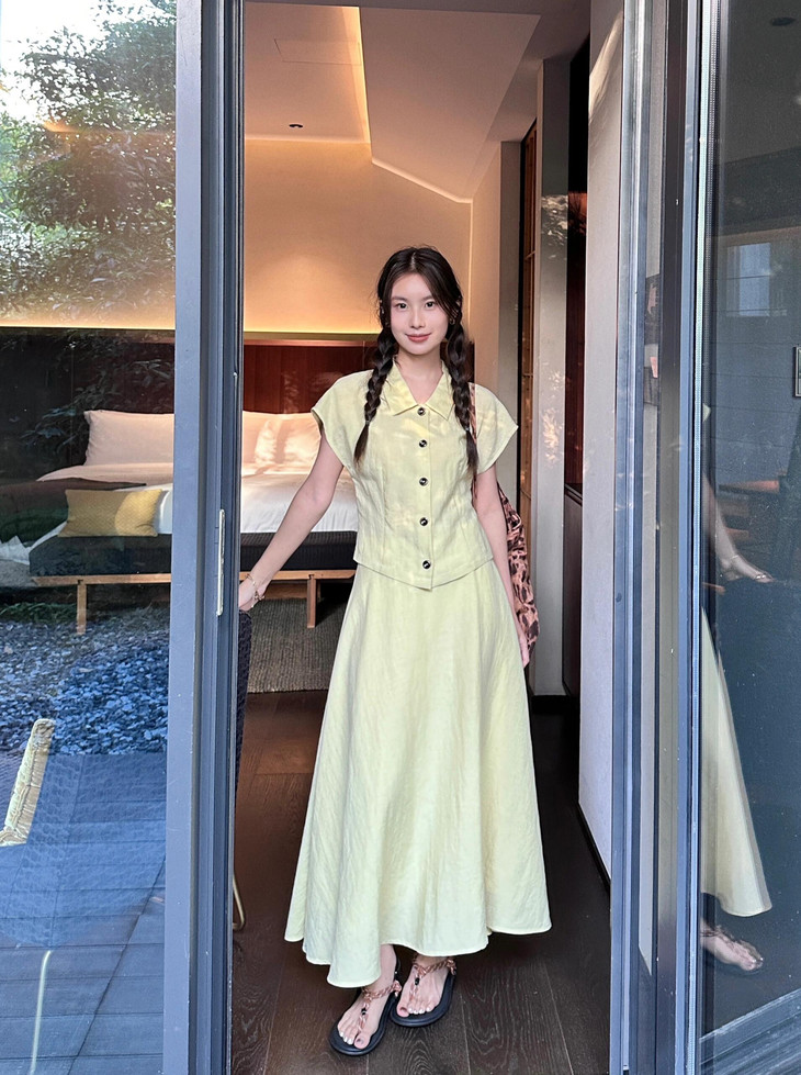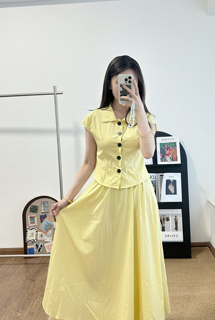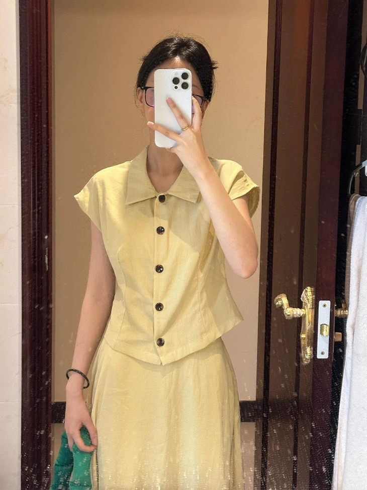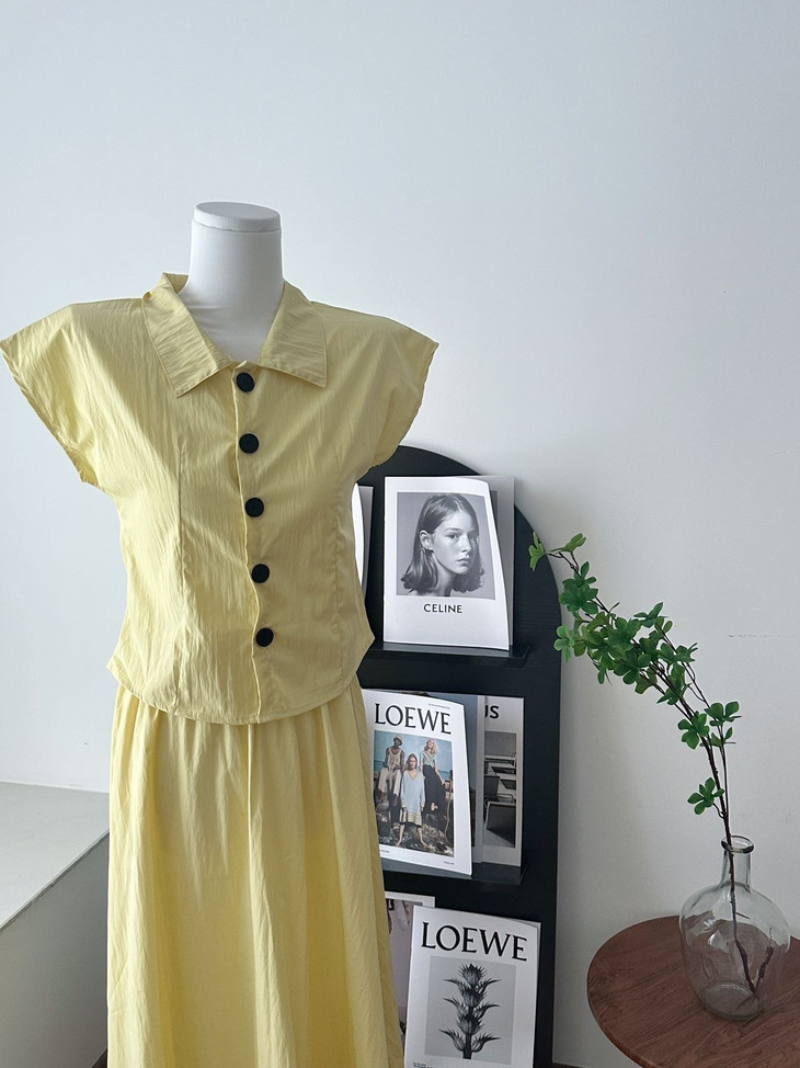 日常单穿都很时髦‼️官搭及分开搭配都很实穿 夏日清爽福利 撞色纽扣设计 A字版型半身裙 裙摆量很大 柔软的面料,亲肤度也很高 团长细节实拍⬇️⬇️⬇️