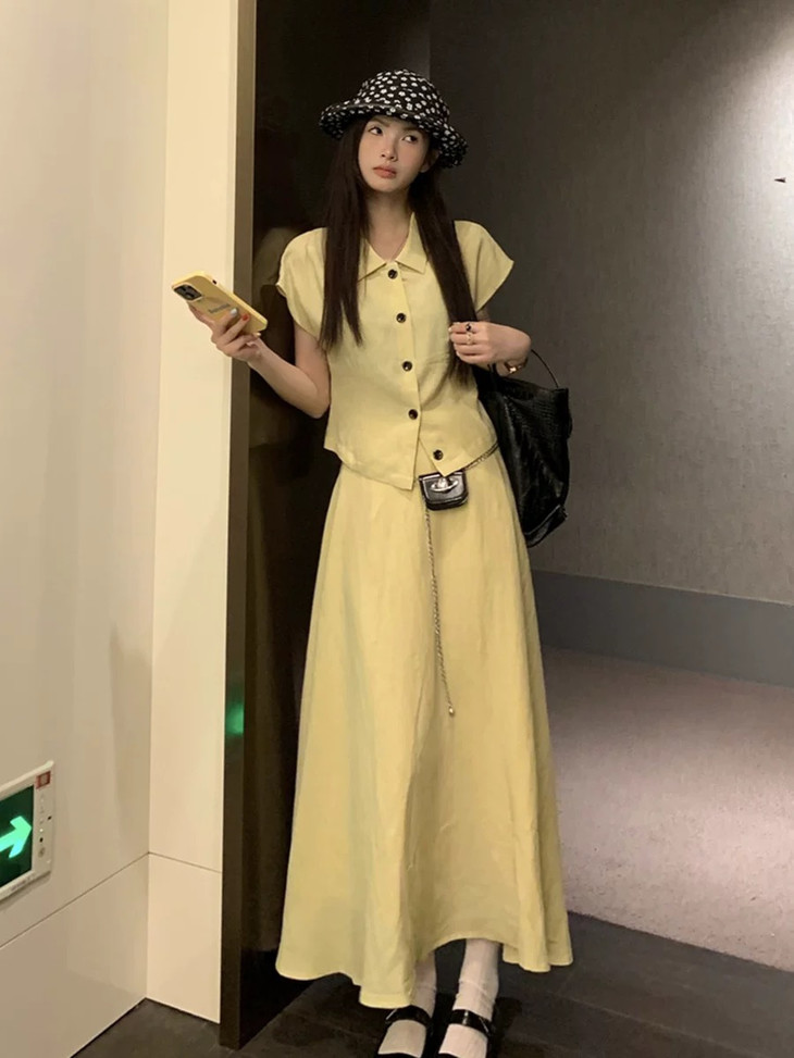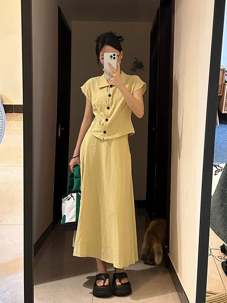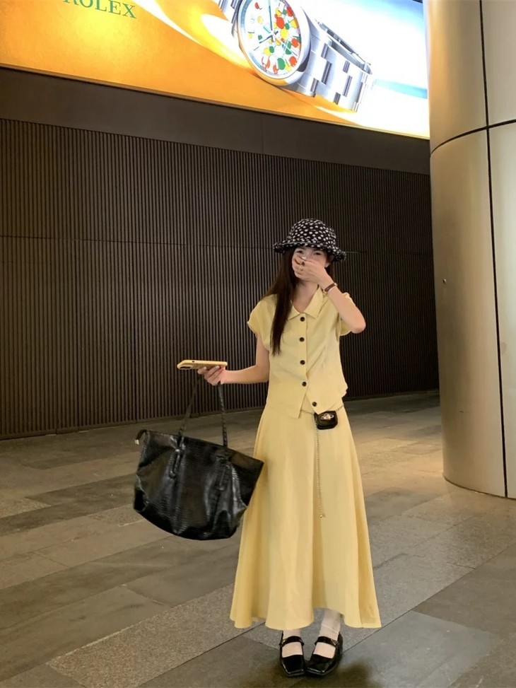 👍👍【度假款!超Chill减龄黄色套装】1.各种博主穿搭都有推荐,巨火🔥🔥 2.慵懒又精致的韩系松弛感☑舒适度满分,👍超级遮肉显瘦