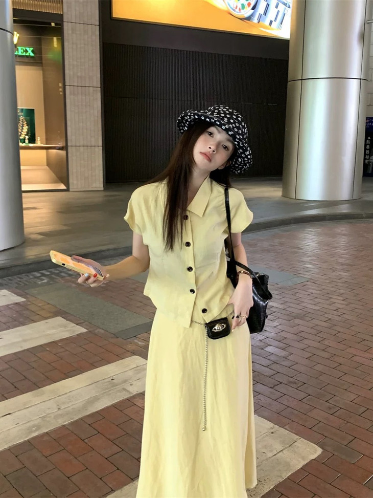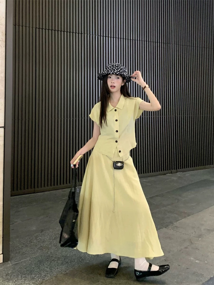 懒人时髦利器 来了 不会穿搭的姐妹们 给大家组了一套完美组合😍 今天这一套Polo领衬衫+高腰显瘦半裙 直接打造出慵懒又精致的韩系松弛感☑️ 舒适度满分,超级遮肉显瘦 这样一套真的会让人眼前一亮❗