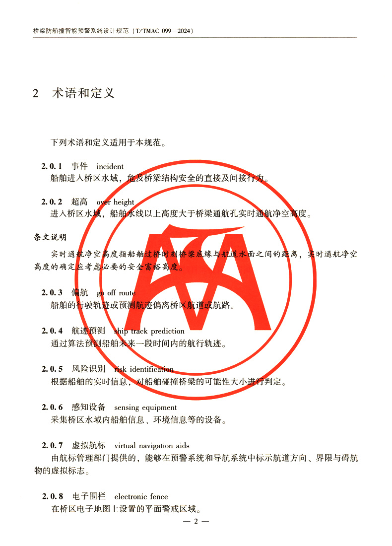 书名:桥梁防船撞智能预警系统设计规范(T/TMAC 099—2024)