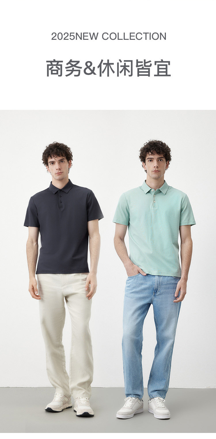 Marc O'Polo/MOP夏季新款高级商务休闲桑蚕丝混纺男士短袖POLO衫