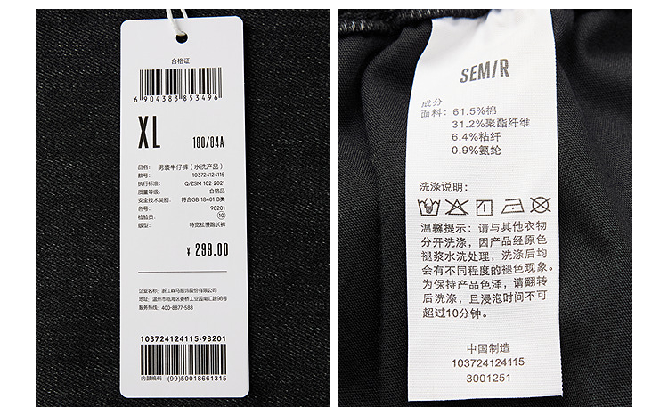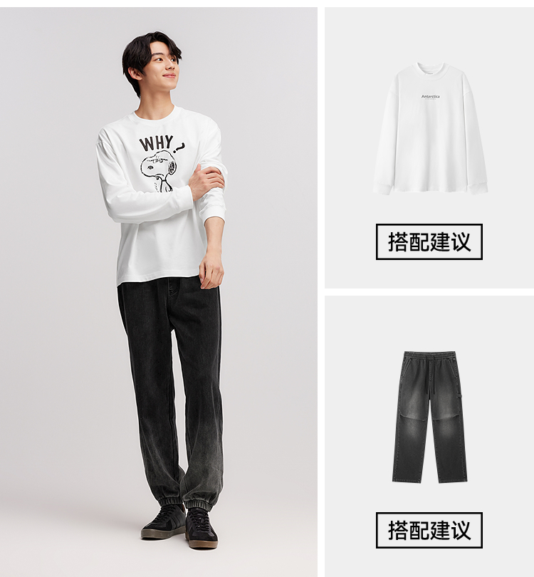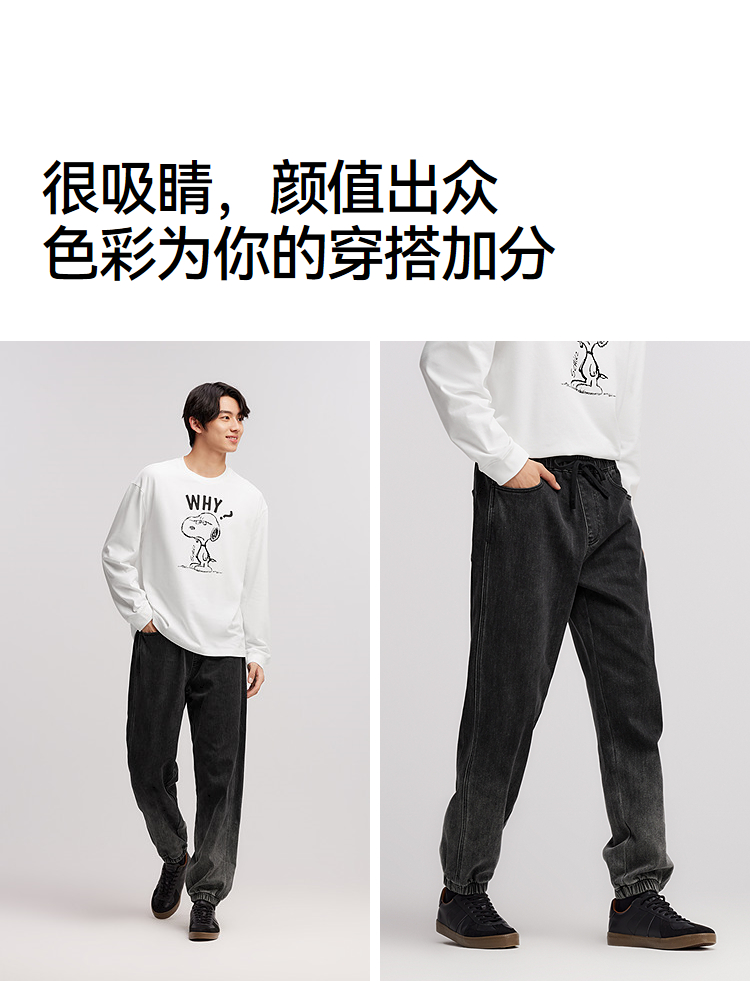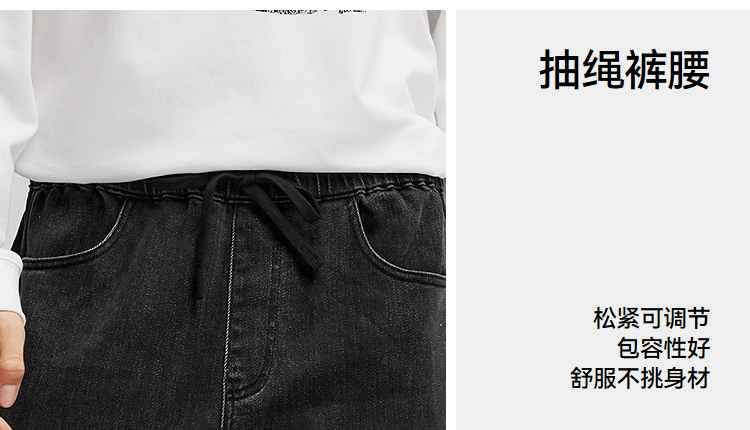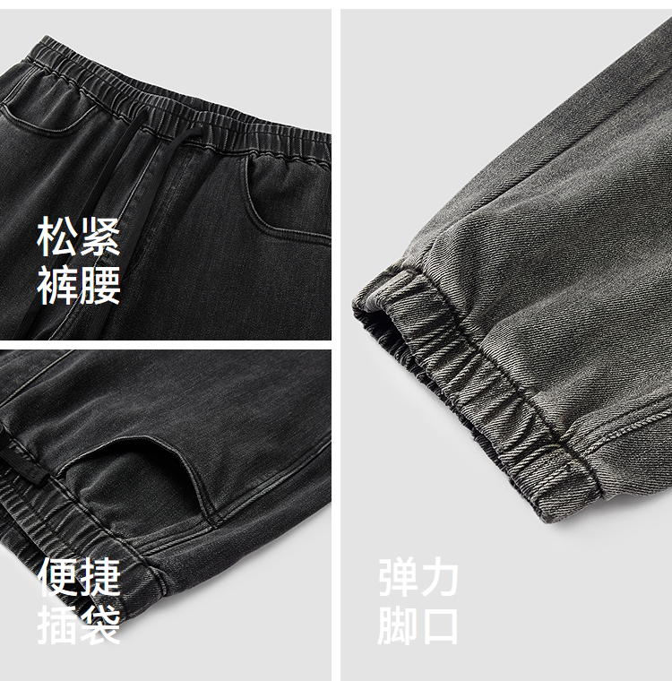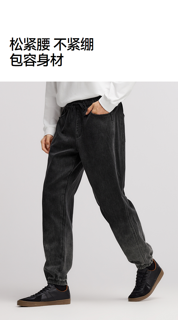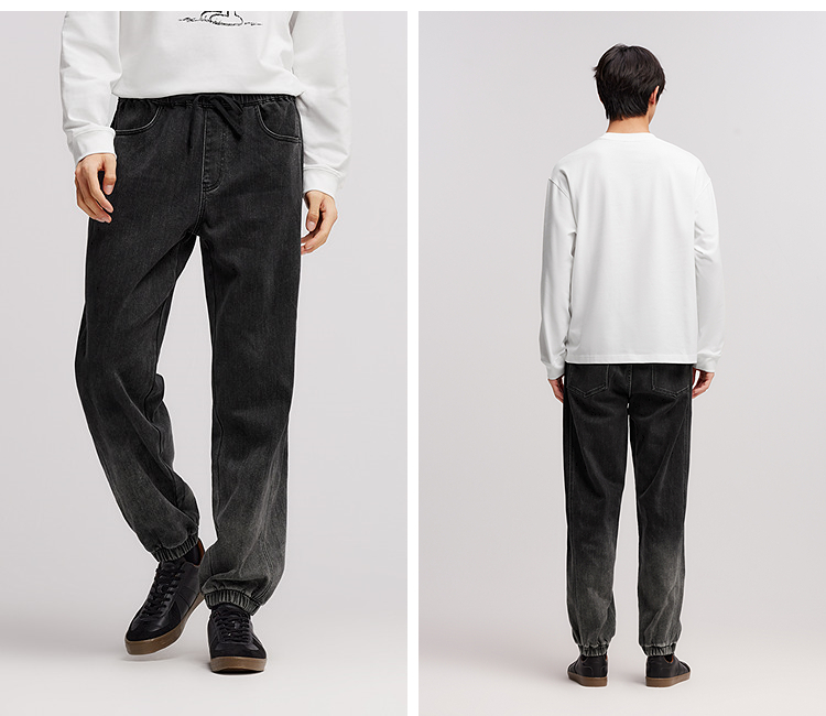 森柔|森马牛仔裤男冬莱卡弹力束脚裤oversize潮流渐变松紧腰裤子
