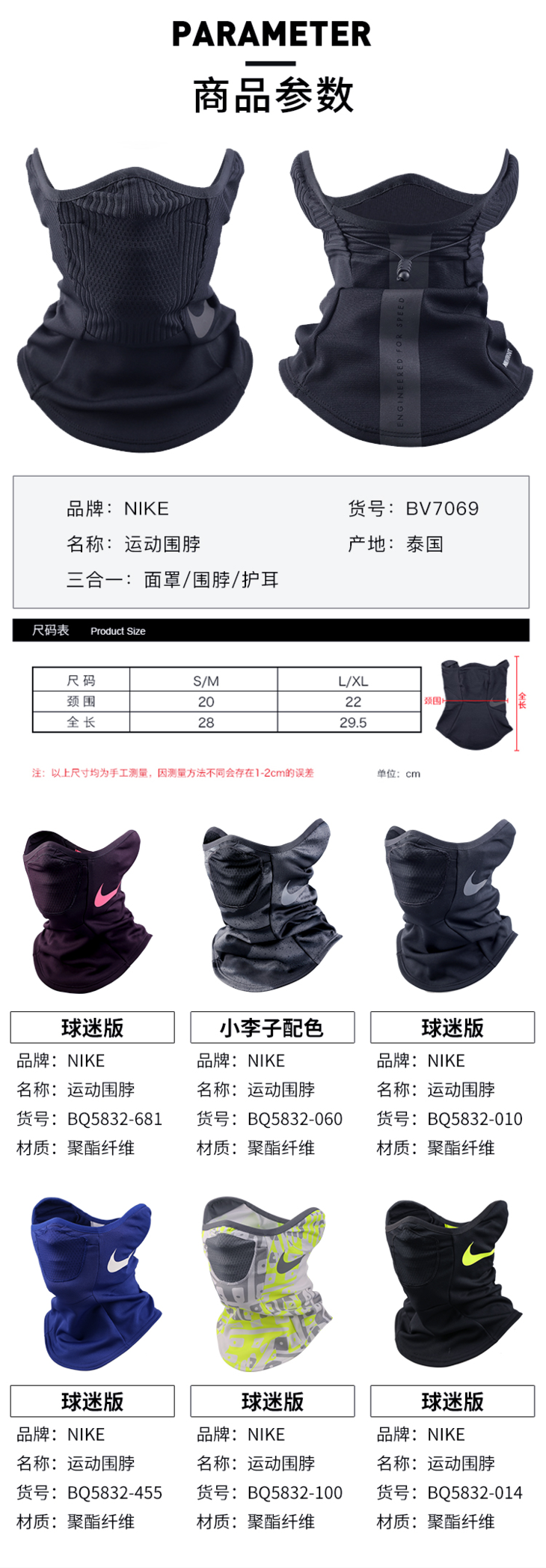 NIKE耐克秋冬防寒球迷版球员版运动面罩围脖