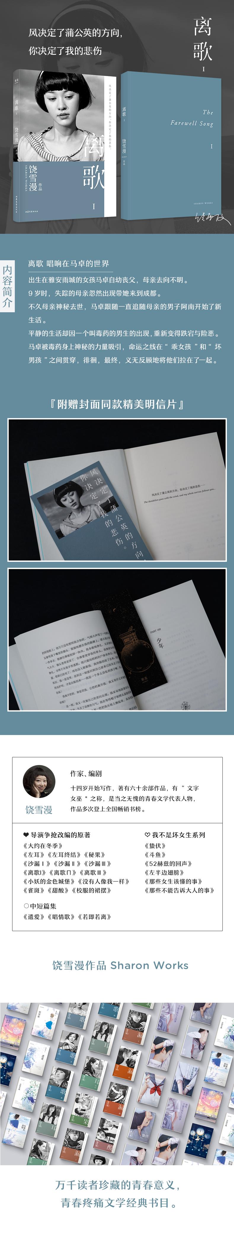 " 离别之歌轰轰烈烈地唱响在马卓的世界,谁在终点处获得幸福,谁又转身离开渴望新生?2019修订版,陈意涵书模首秀,再现万千读者珍藏的青春记忆。 百万销量级青春疼痛文学经典作品,《离歌》让我们在疼痛过后读懂爱并感悟成长。"