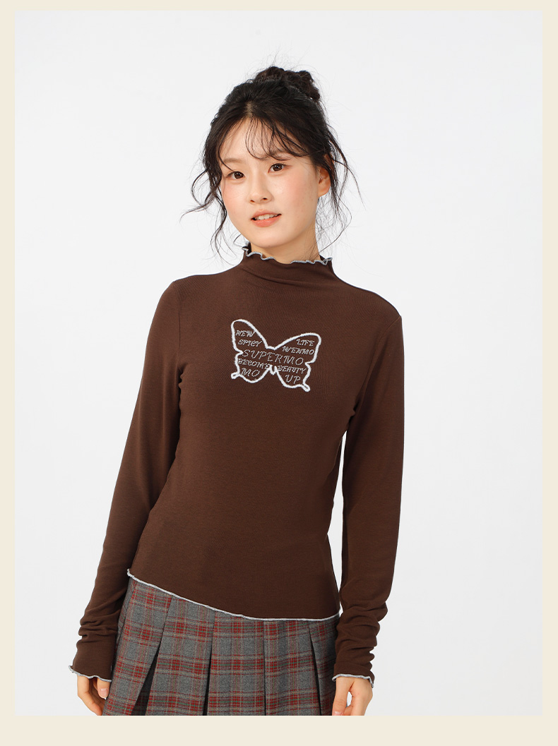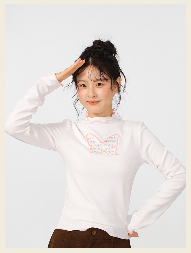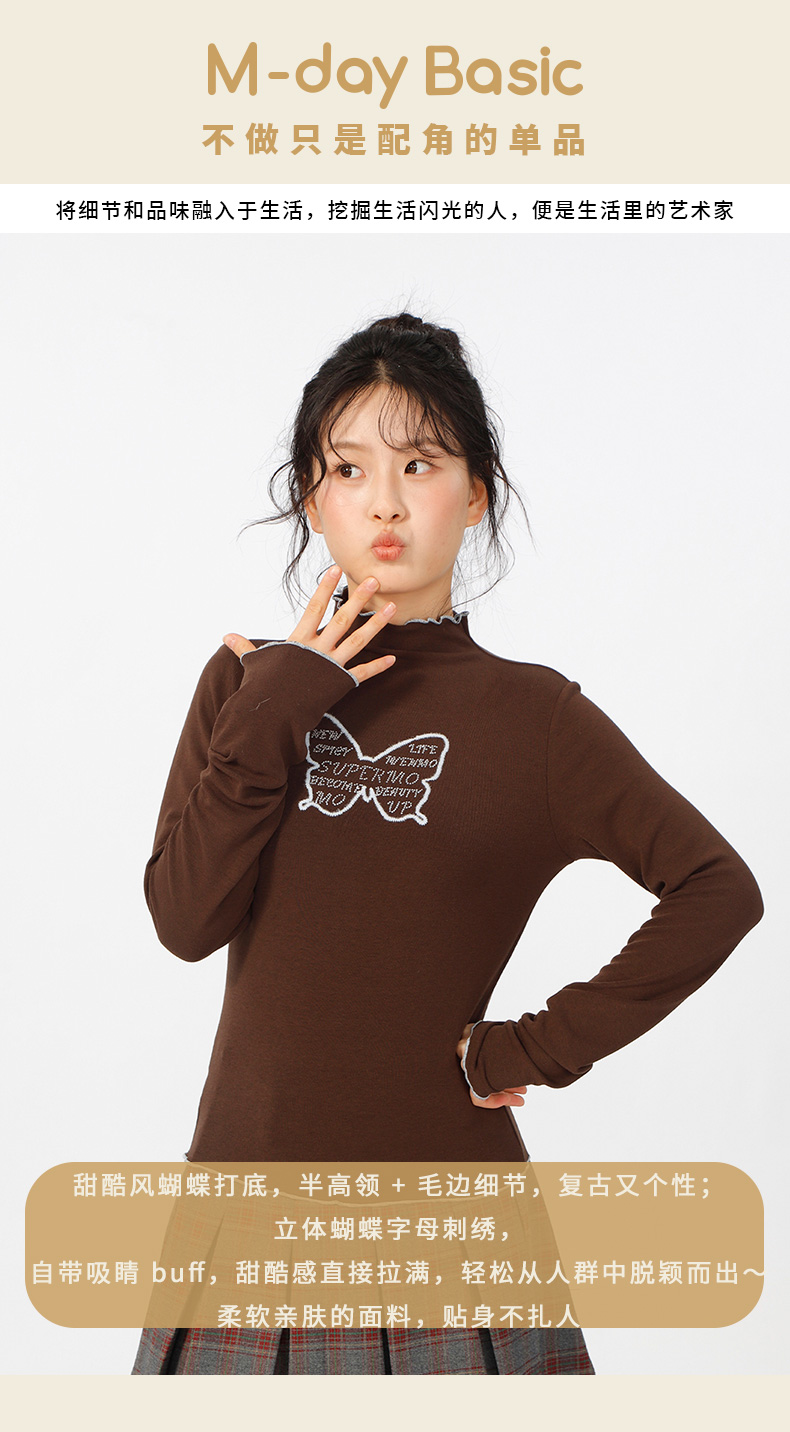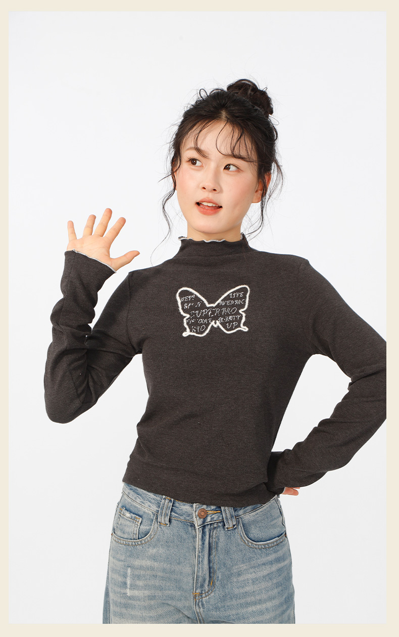 甜酷风蝴蝶半高领基本款羊绒T恤-纪念日百货门店同款166394863