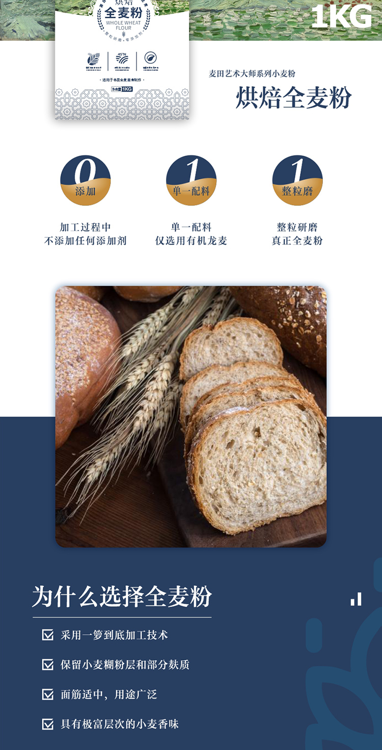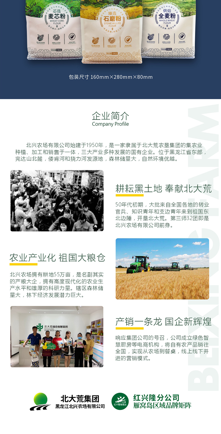 【有机认证】北大荒有机全麦粉 1kg/袋 北兴农场麦田大师系列