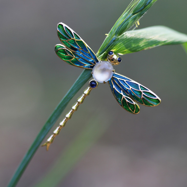 「豆蜻蜓」透烧珐琅蜻蜓胸针【定制】